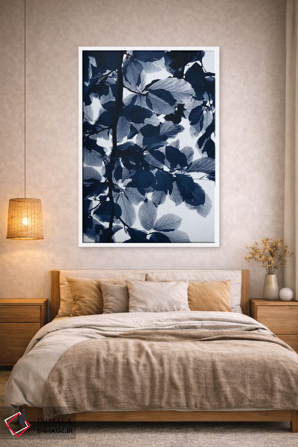 در «برگهای نیلی» اثرِ «لکسی گر ایر»، گلها و گیاهان چیدمان را از خشکی بیرون میآورد؛ برای اتاق خواب انتخابی خوشسلیقه است. در کنار گیاهان آپارتمانی، هماهنگتر هم میشود.