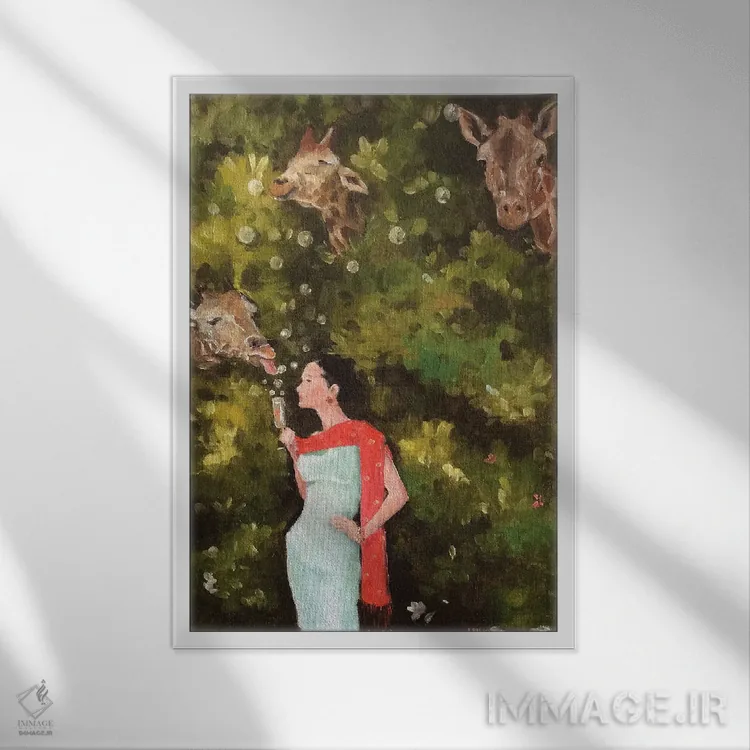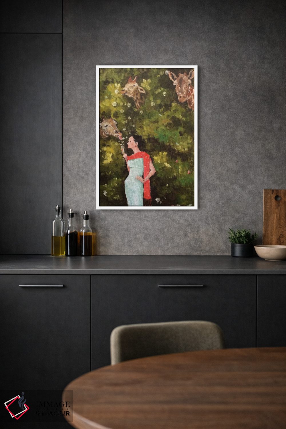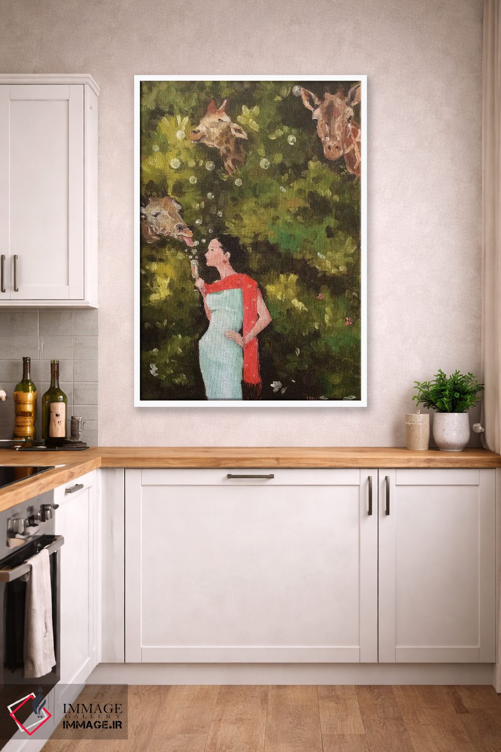 براساس پالت ترکیبی اثر، قاب تیک گرم (چوبی) پیشنهاد اول است و مشکی مات (فریم متوسط) مکمل. برای سفارشهای پروژهای با ابعاد و قابهای اختصاصی با ایماژ در تماس باشید.
