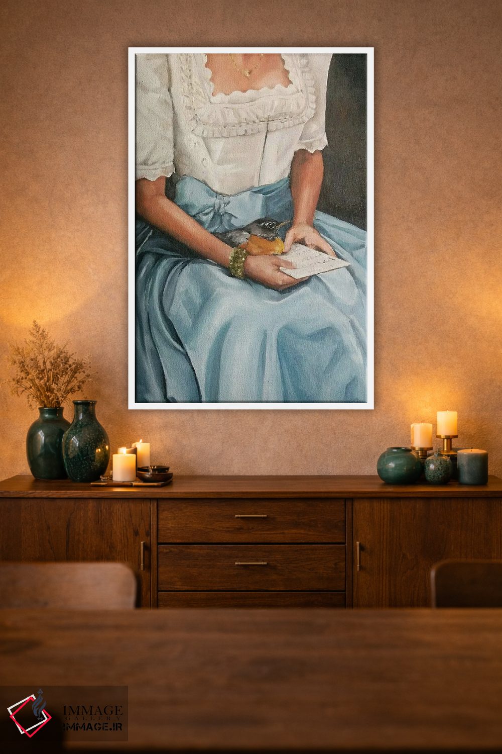اگر میخواهید دیوار کمی سرزندگیِ محترمانه داشته باشد، «آواز سینهسرخ (نوعی پرنده)» اثرِ «لیزا فینچ» یک لبخند ریز به چیدمان میدهد، برای خانههایی با چوب و پارچههای گرم گزینهٔ مناسبیست. برای دیوار گالریوار هم گزینهٔ خوبیست.
