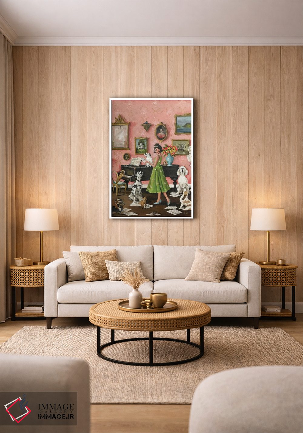 برای گالریوال و چیدمان چندقابی، با ایماژ از طریق تماس—با—ما/">تماس با ما در ارتباط باشید برای اینکه بهترین گزینه را پیدا کنید. اگر دوست دارید در نهایت اثر در فضا «کلاسیک و اصیل» دیده شود، نور موضعی ملایم نتیجه را بهتر نشان میدهد و چیدمان را یکدستتر نشان میدهد.