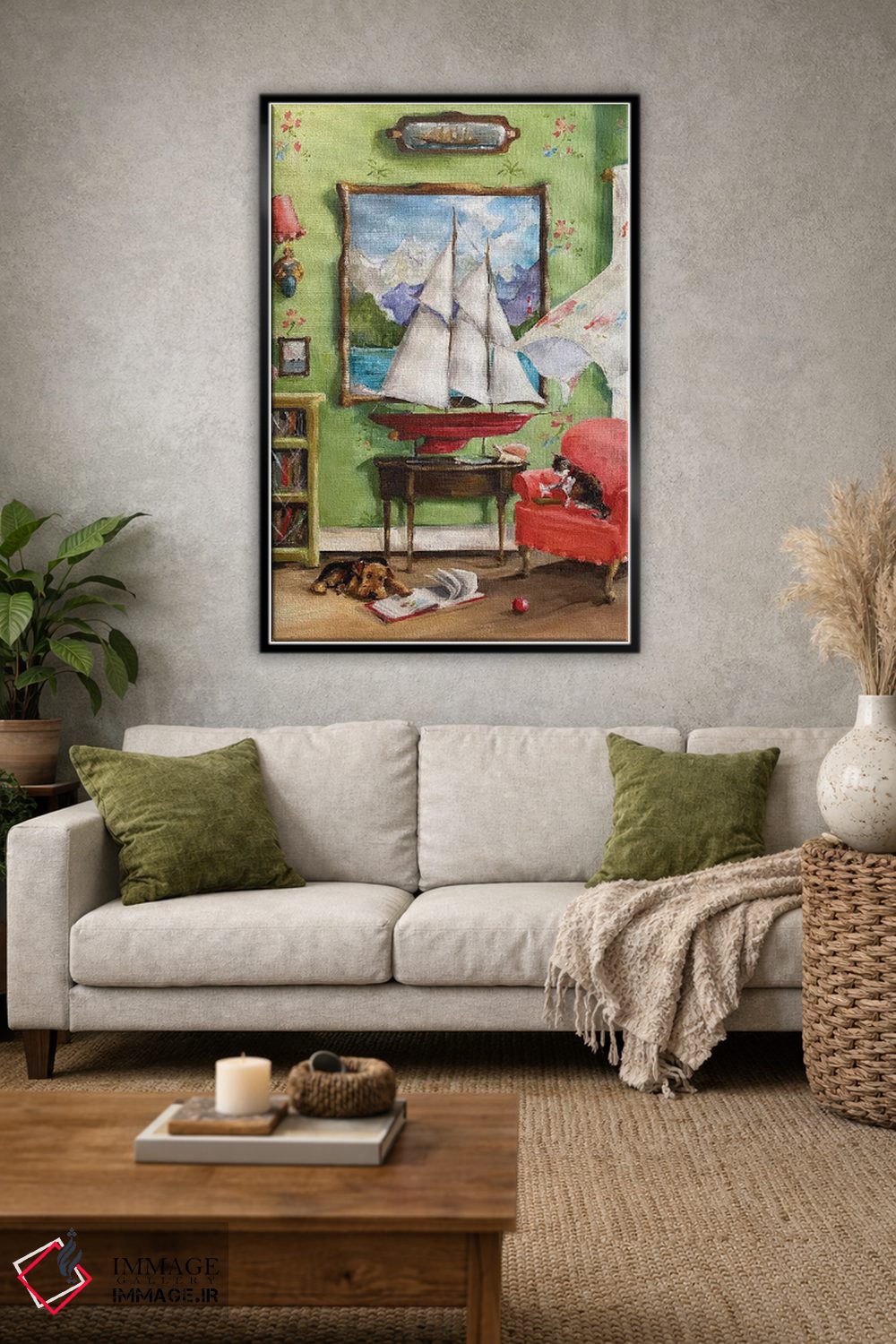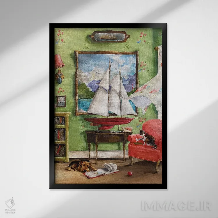براساس پالت ترکیبی اثر، قاب تیک گرم (چوبی) پیشنهاد اول است و مشکی مات (فریم متوسط) مکمل. برای سفارشهای پروژهای با ابعاد و قابهای اختصاصی با ایماژ در تماس باشید.