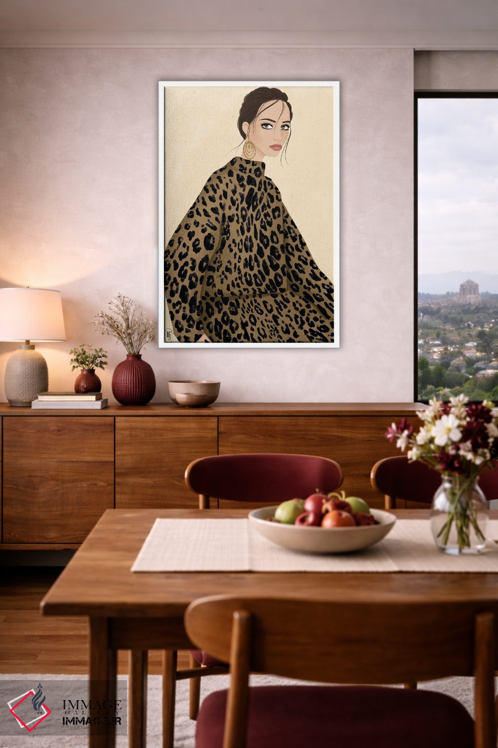 اگر دکور شما به یک لهجهی فشن و مدرن نیاز دارد، «بانوی یوزپلنگی» اثرِ «لا فَم ژوژو (نام هنری یا استودیو)» را ببینید.