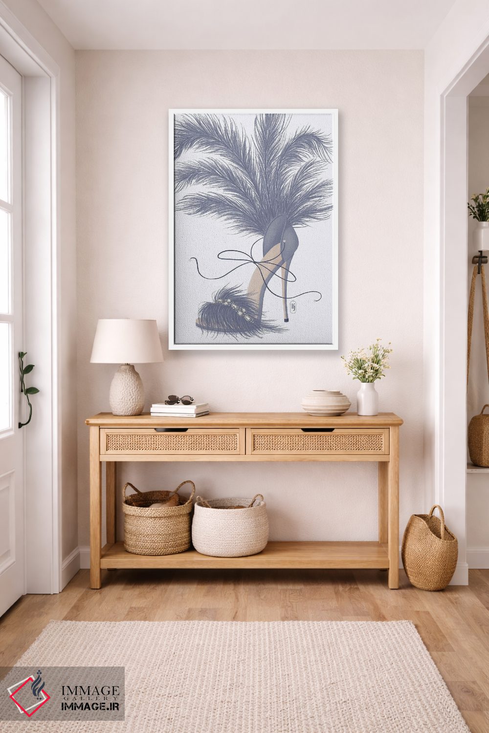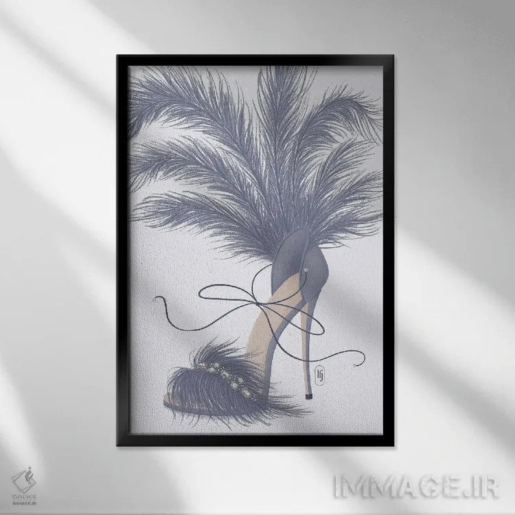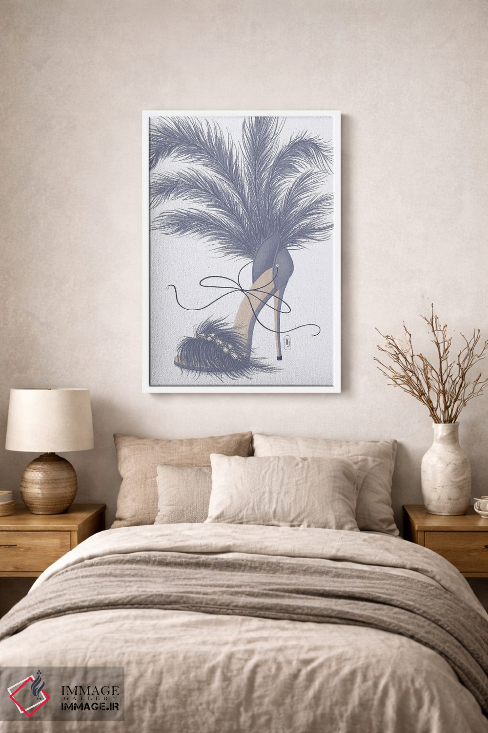تابلو دکوراتیو کفش با پرهای یاسی اثر لا فم ژوژو