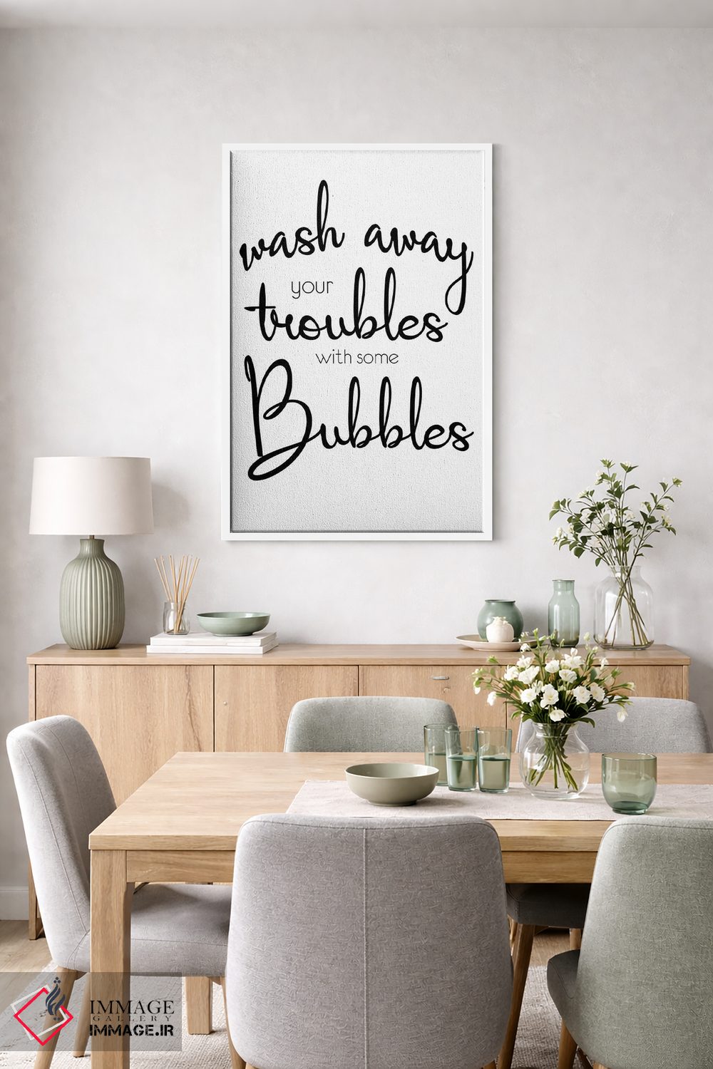 اگر دکور شما مدرن و کمرنگ است، «بشوی و پاک کن» اثرِ «لورِن گیبونز» با موضوعِ این اثر در فضای دیجیتال سیاهوسفید گزینهی خوبی است.