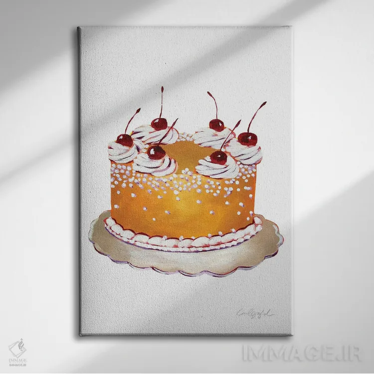 تابلو دکوراتیو کیک طلایی با گیلاس اثر لورل گرینفیلد