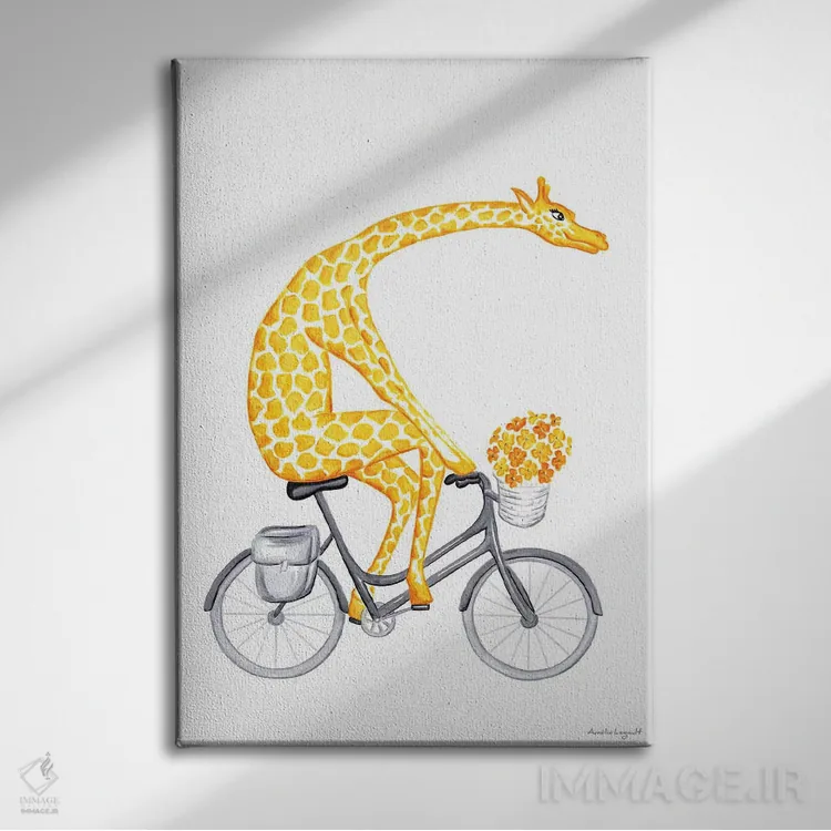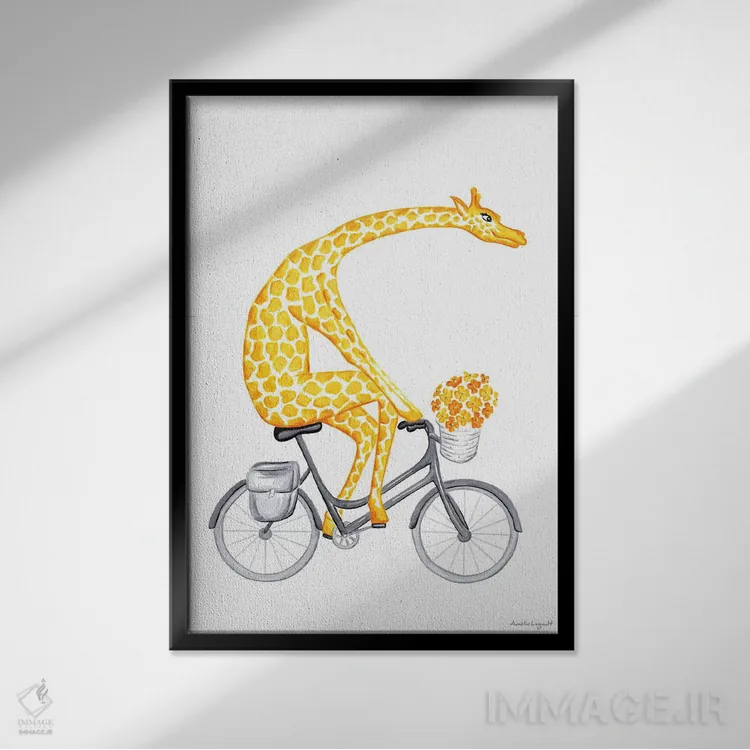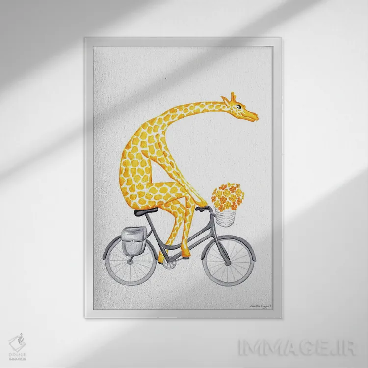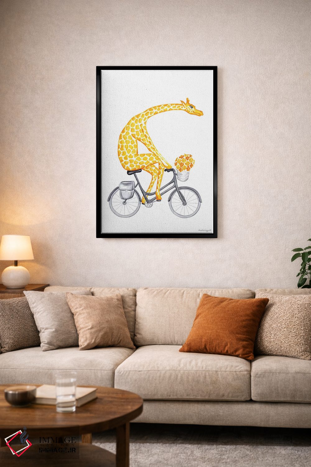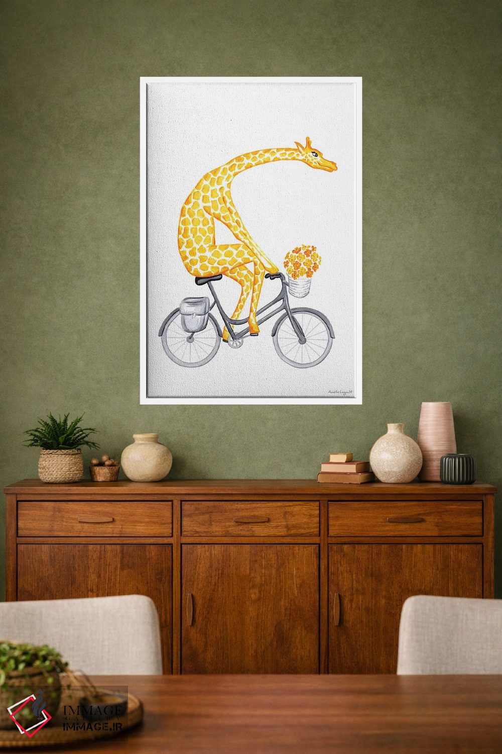 تابلو دکوراتیو زرافه روی دوچرخه اثر آملی لگو