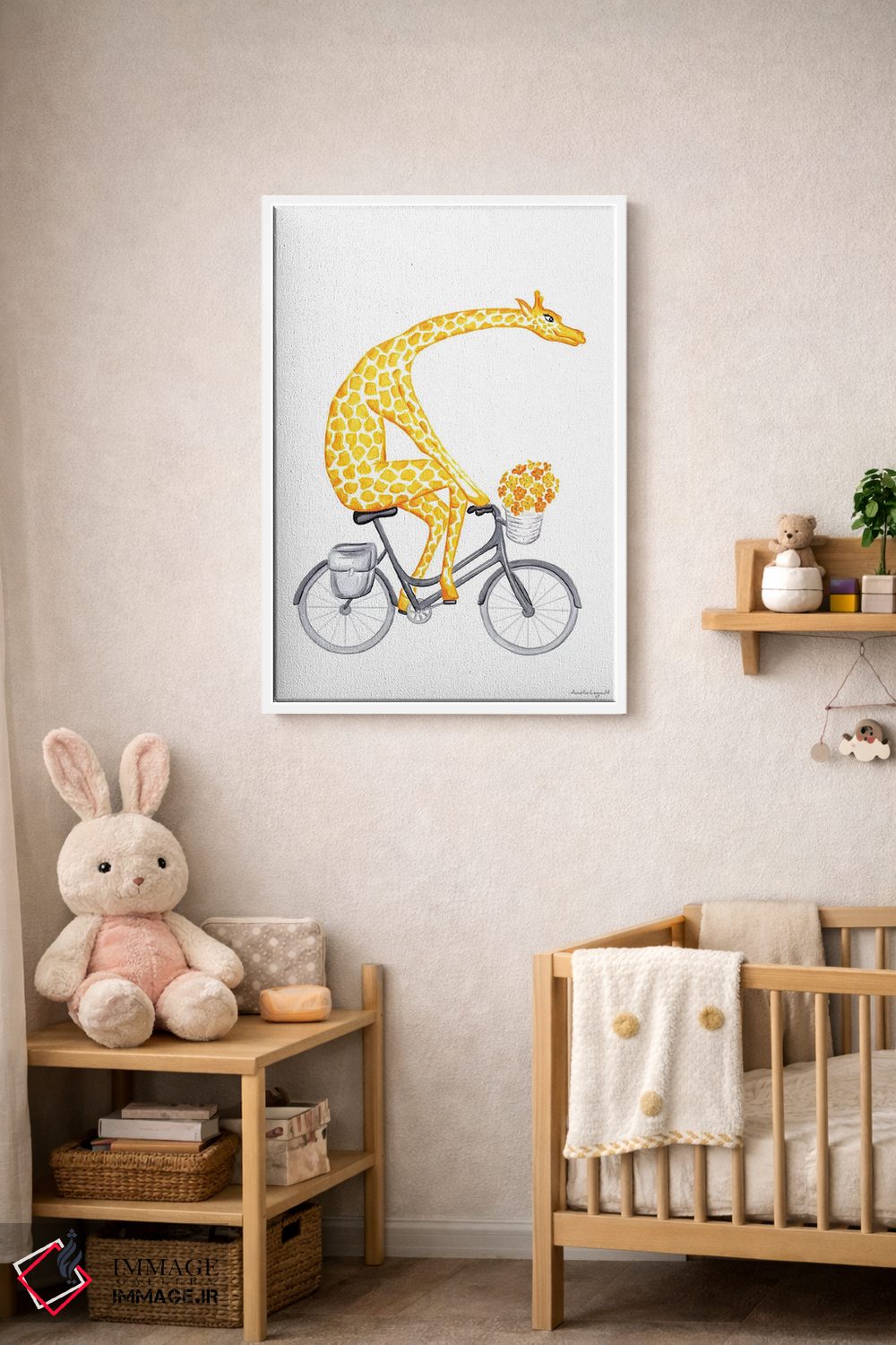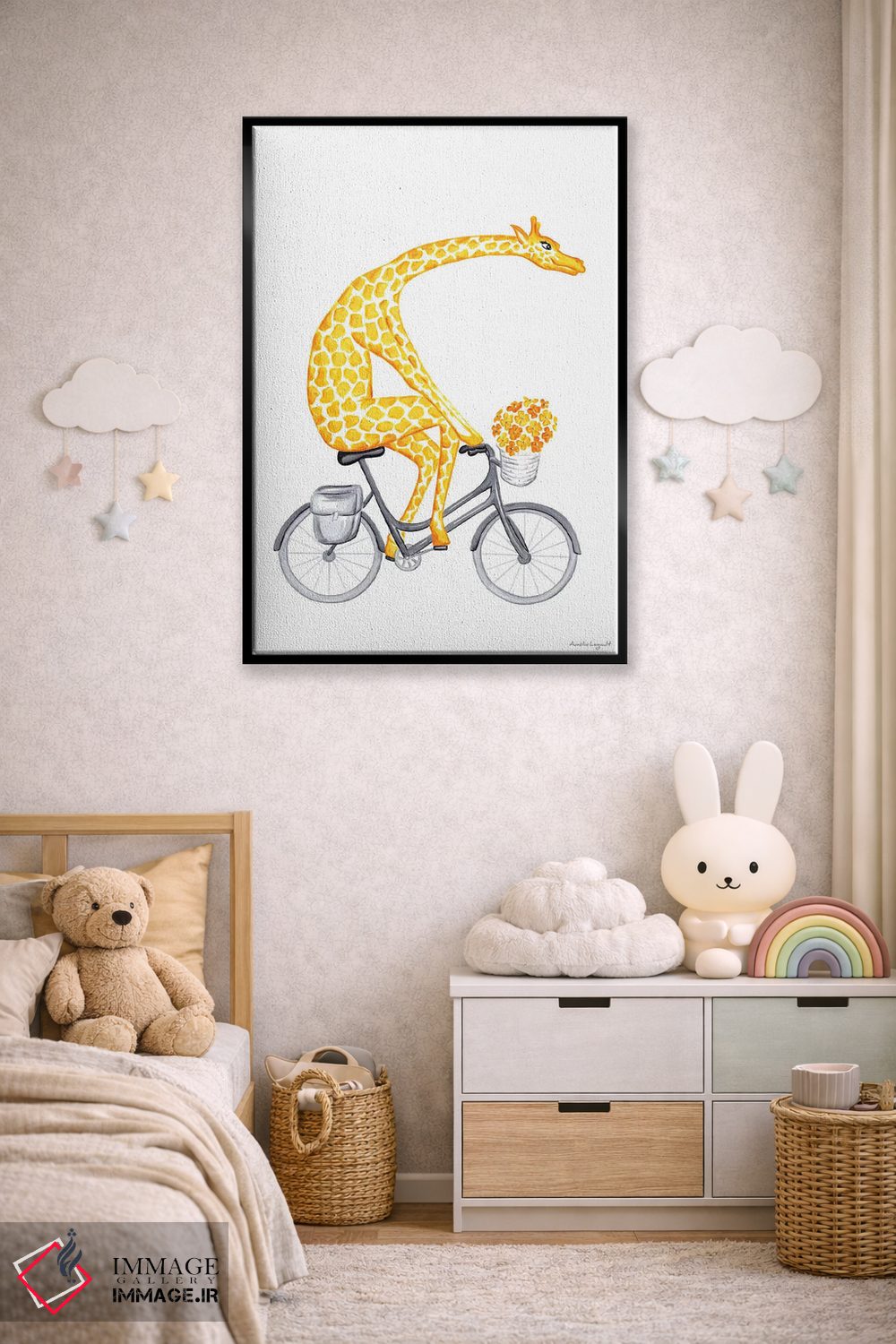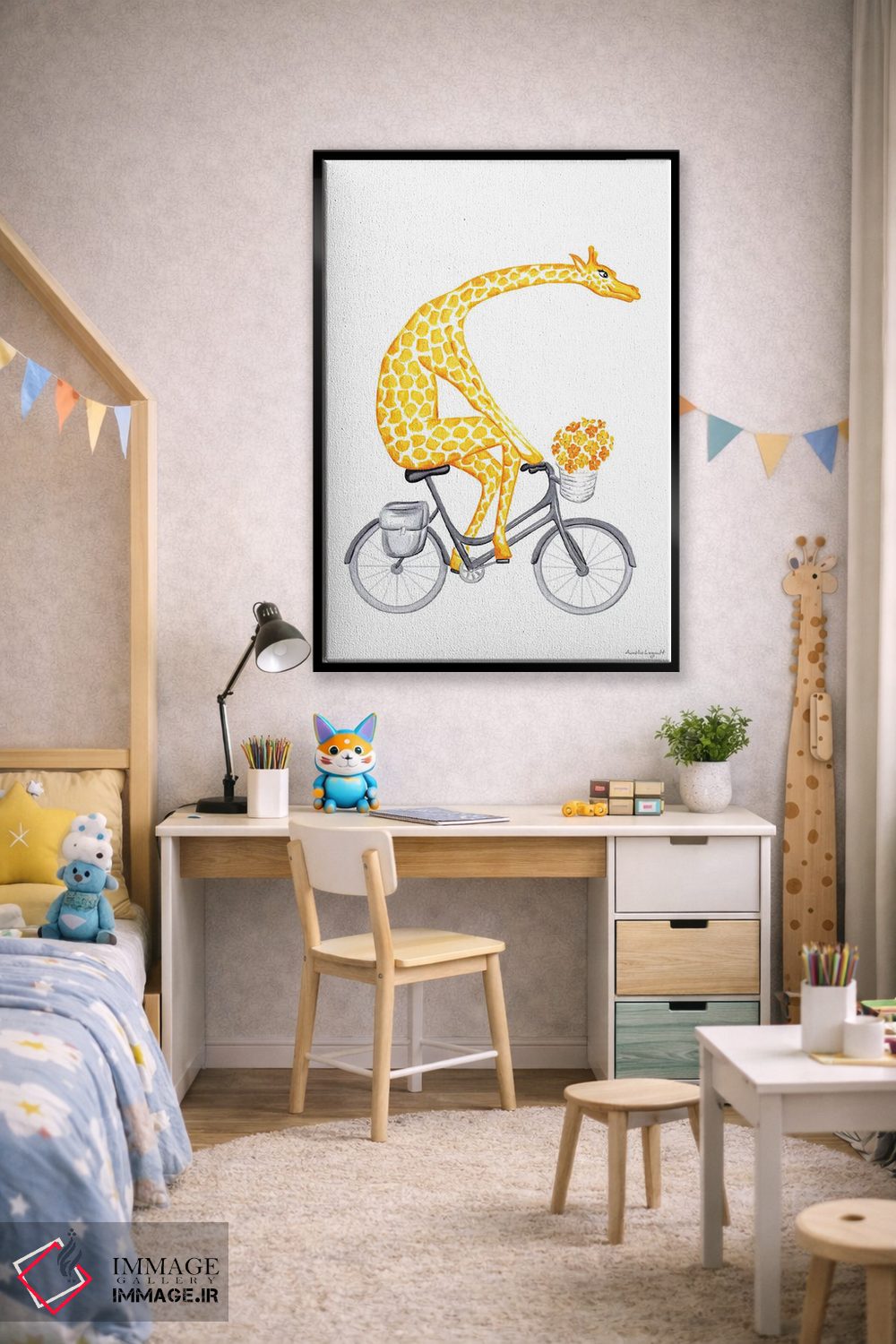تابلو دکوراتیو زرافه روی دوچرخه اثر آملی لگو