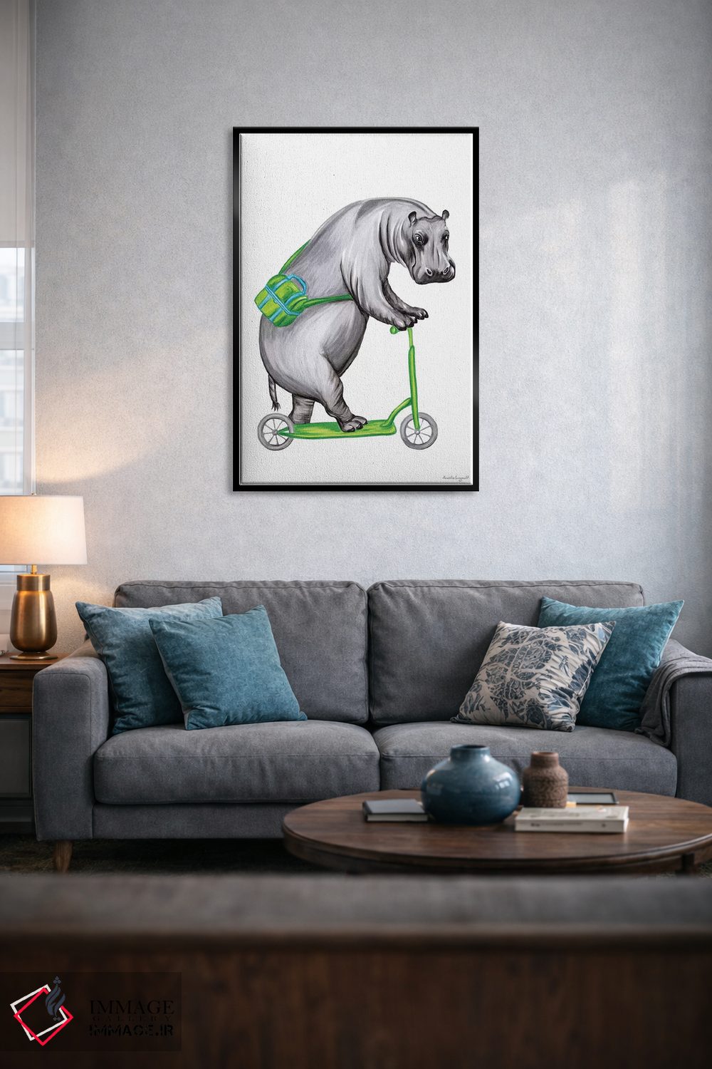 اگر میخواهید دیوار کمی سرزندگیِ محترمانه داشته باشد، «اسبآبی روی دوچرخه» اثرِ «آملی لگو (Amelie Legault)» یک لبخند ریز به چیدمان میدهد، برای هدیهدادن به دوستداران حیوانات گزینهٔ مناسبیست. با نورپردازی نقطهای، جذابتر هم میشود.