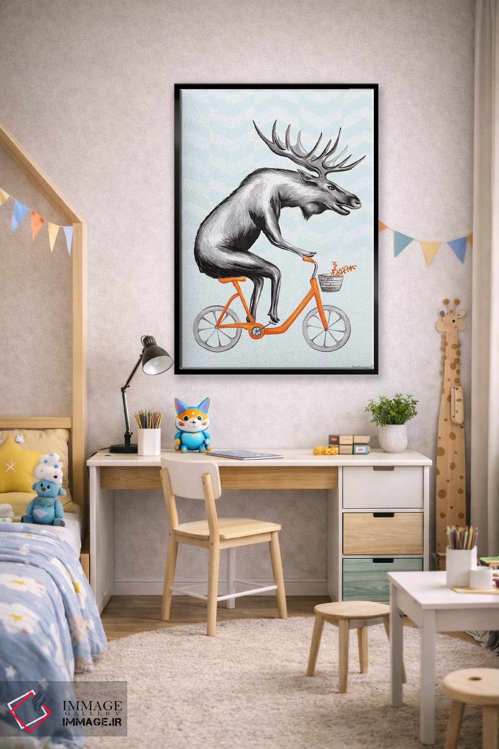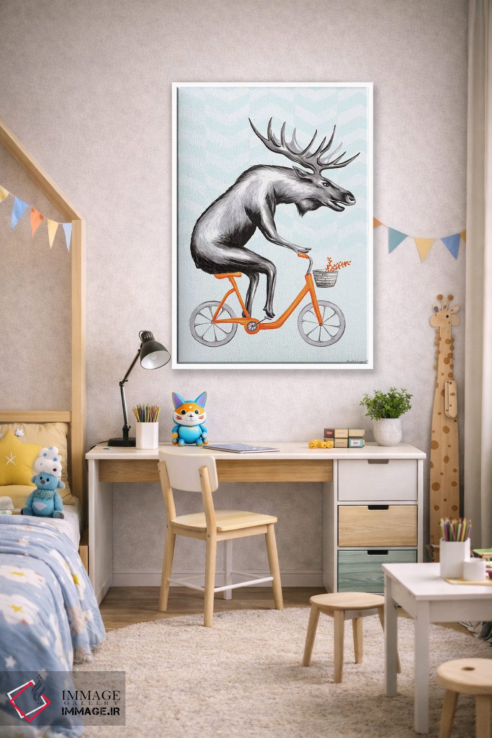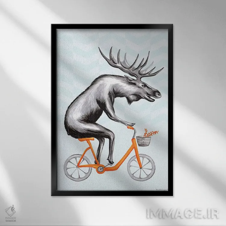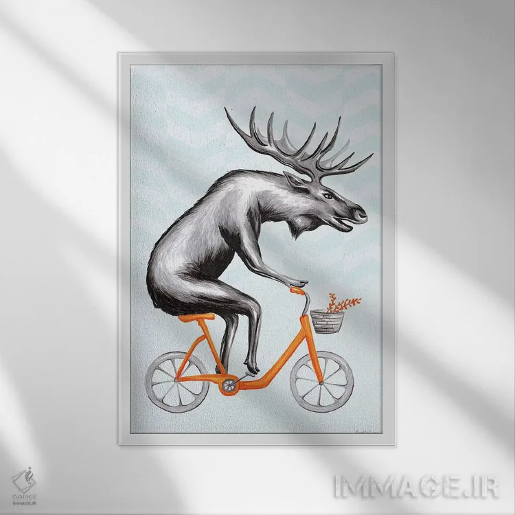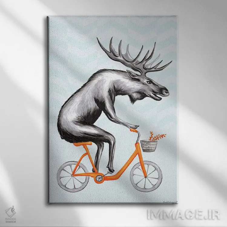 تابلو دکوراتیو گوزن شمالی روی دوچرخه اثر آملی لگو - نمای پرسپکتیو محصول