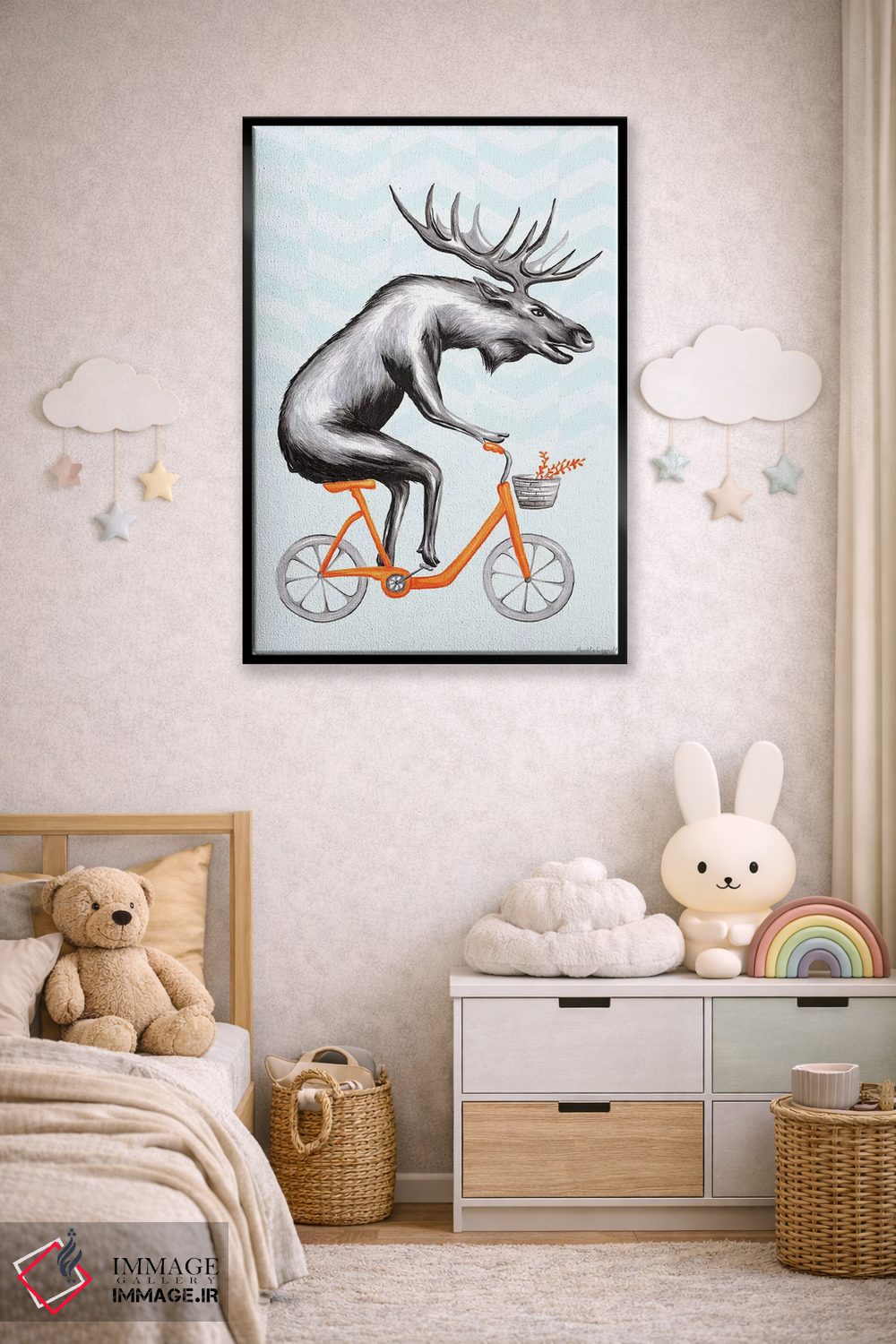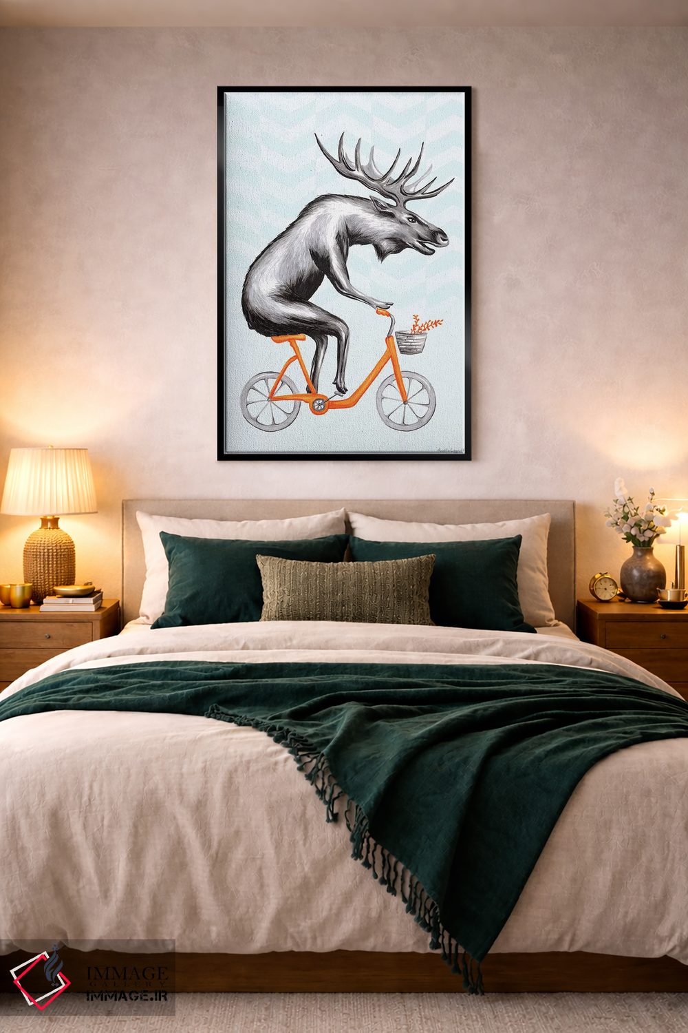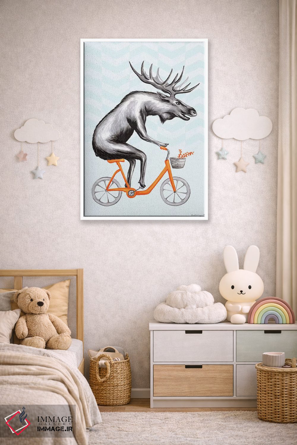 تابلو دکوراتیو گوزن شمالی روی دوچرخه اثر آملی لگو - نمای پرسپکتیو محصول