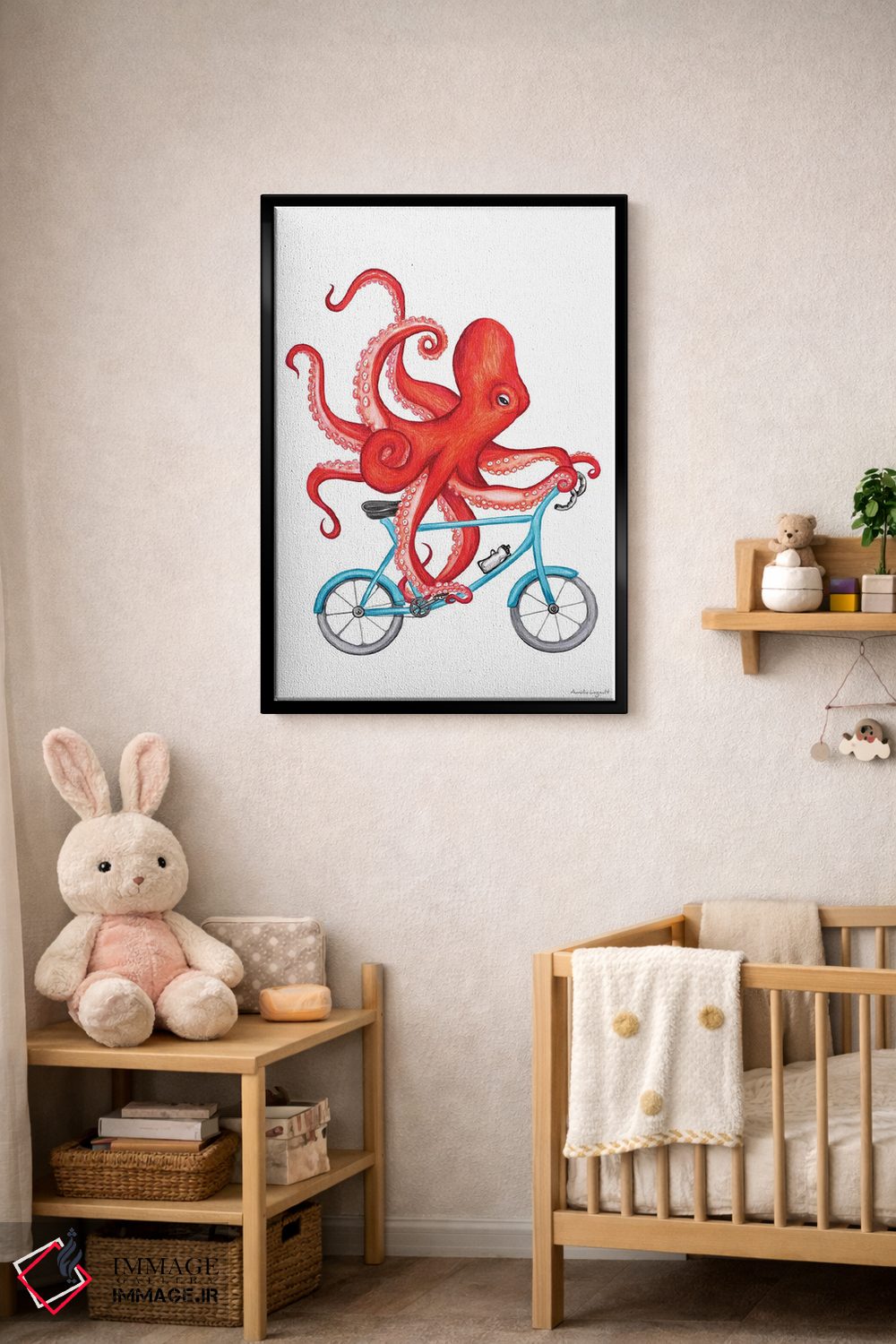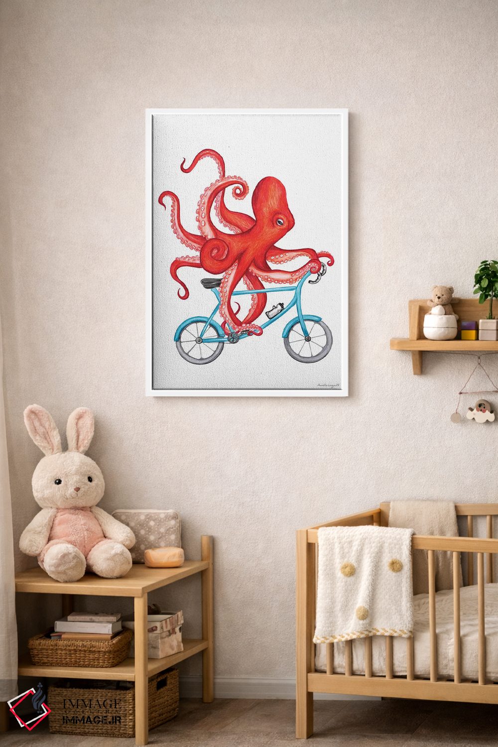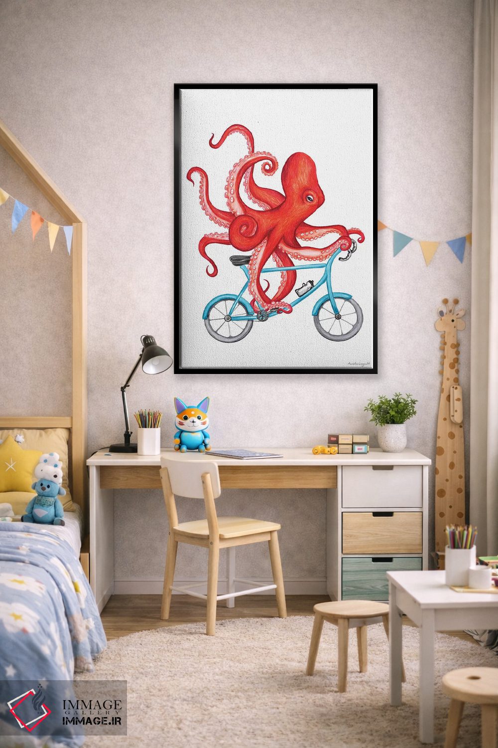«هشتپا روی دوچرخه» اثرِ «آملی لگو (Amelie Legault)» میتواند بدون کودکانه شدن، بازیگوش و خوشپرداخت میماند؛ برای اتاق بازی یا گوشهٔ مطالعه پیشنهاد شود. برای دیوار گالریوار هم گزینهٔ خوبیست.
