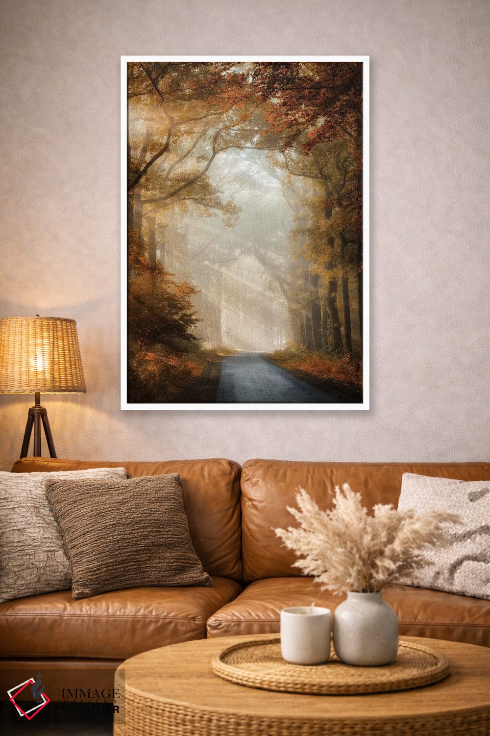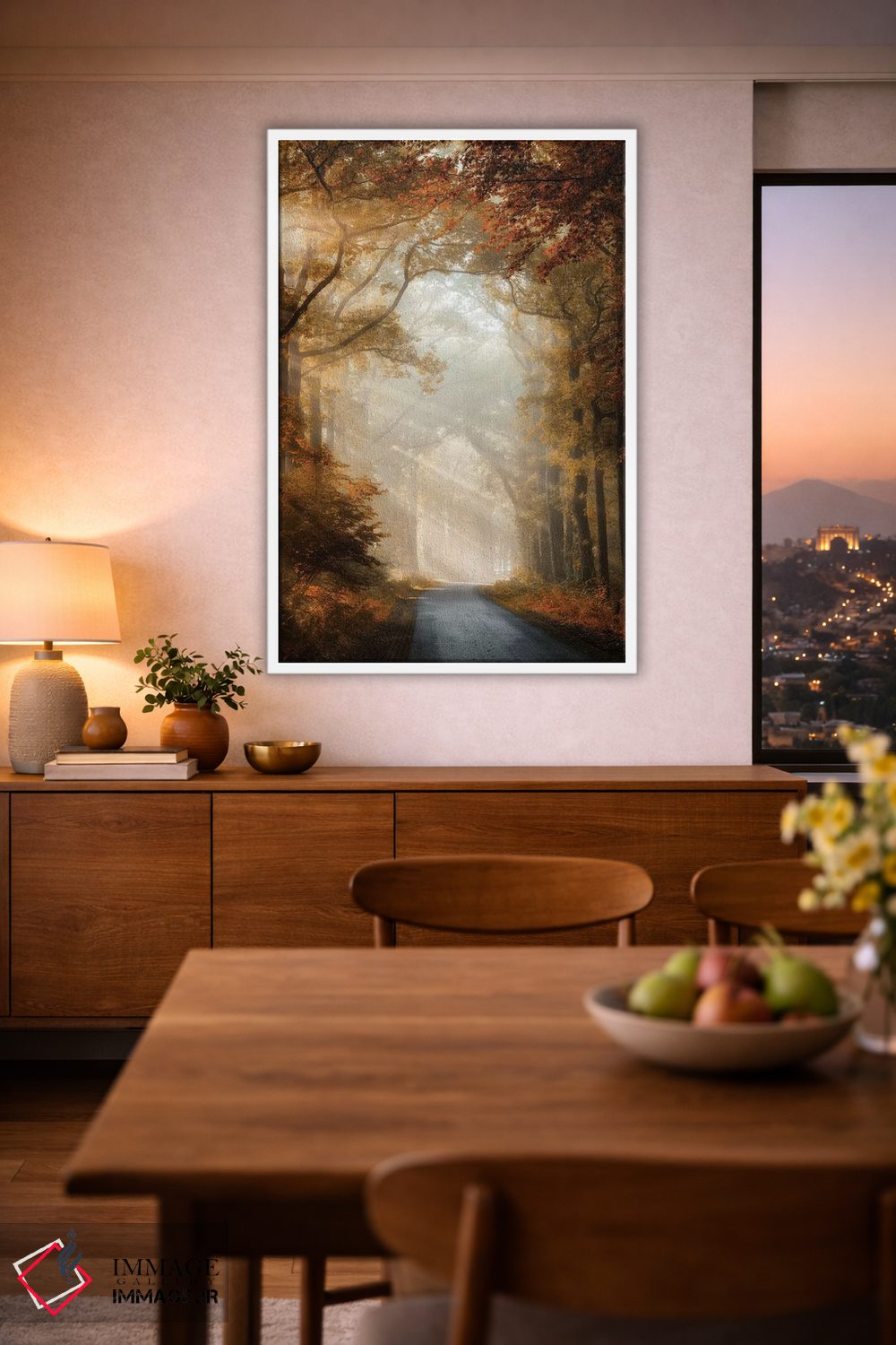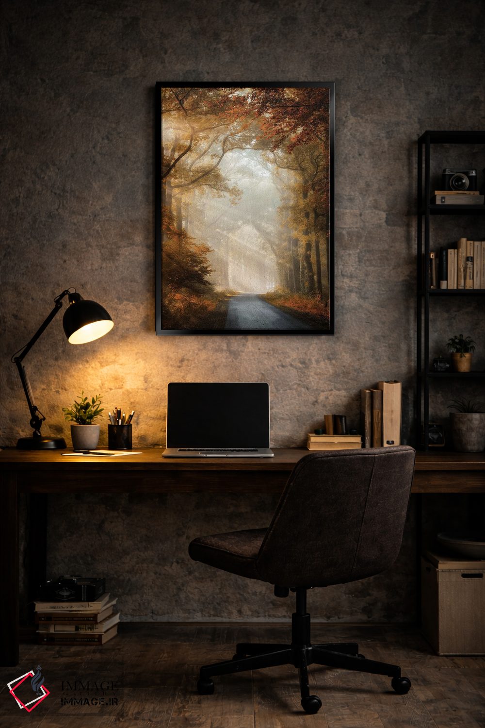 براساس پالت گرم اثر، قاب بلوط روشن (چوبی) پیشنهاد اول است و استخوانی ملایم مکمل. برای سفارشهای پروژهای با ابعاد و قابهای اختصاصی با ایماژ در تماس باشید.