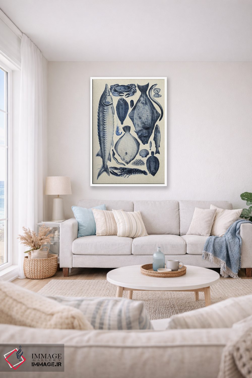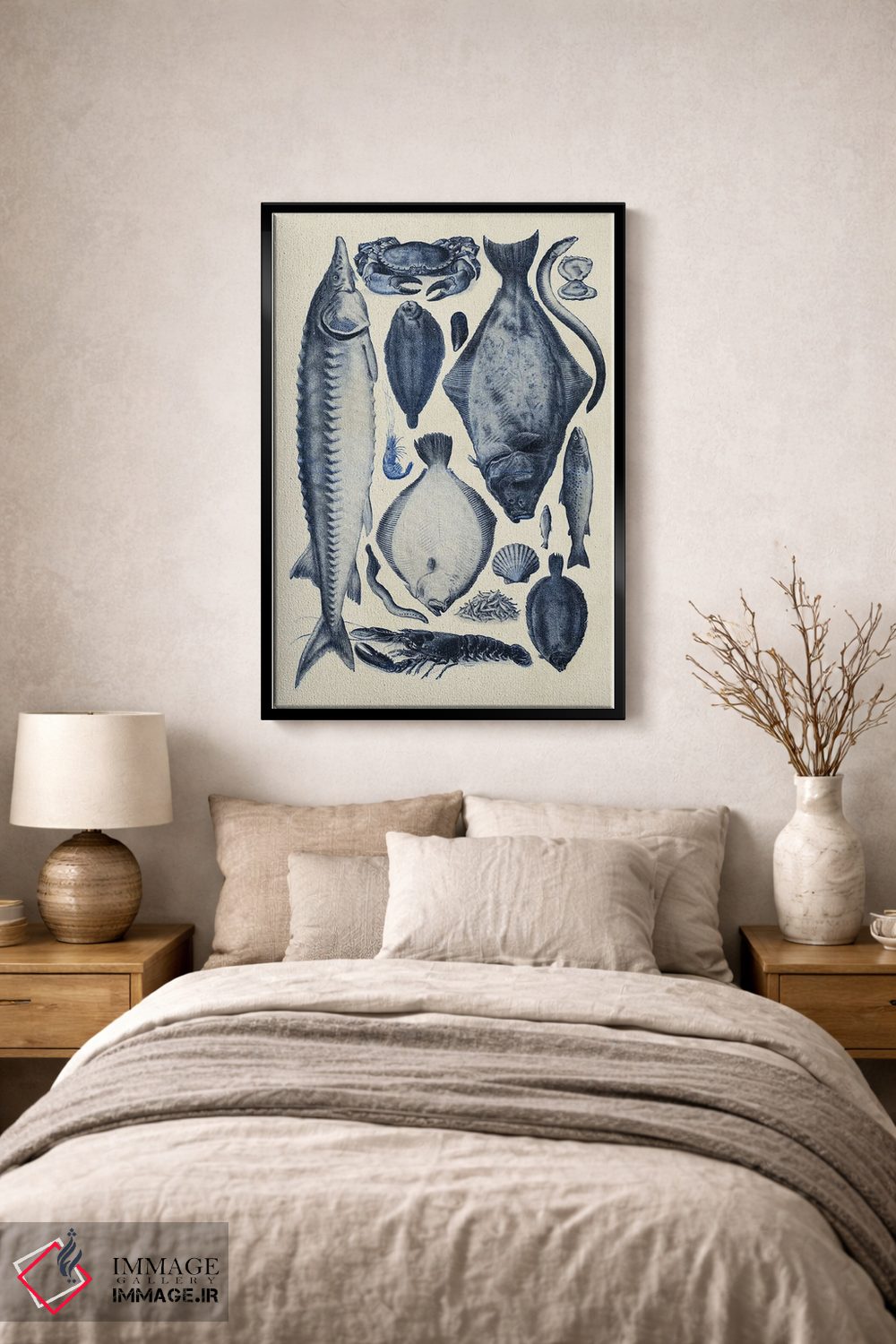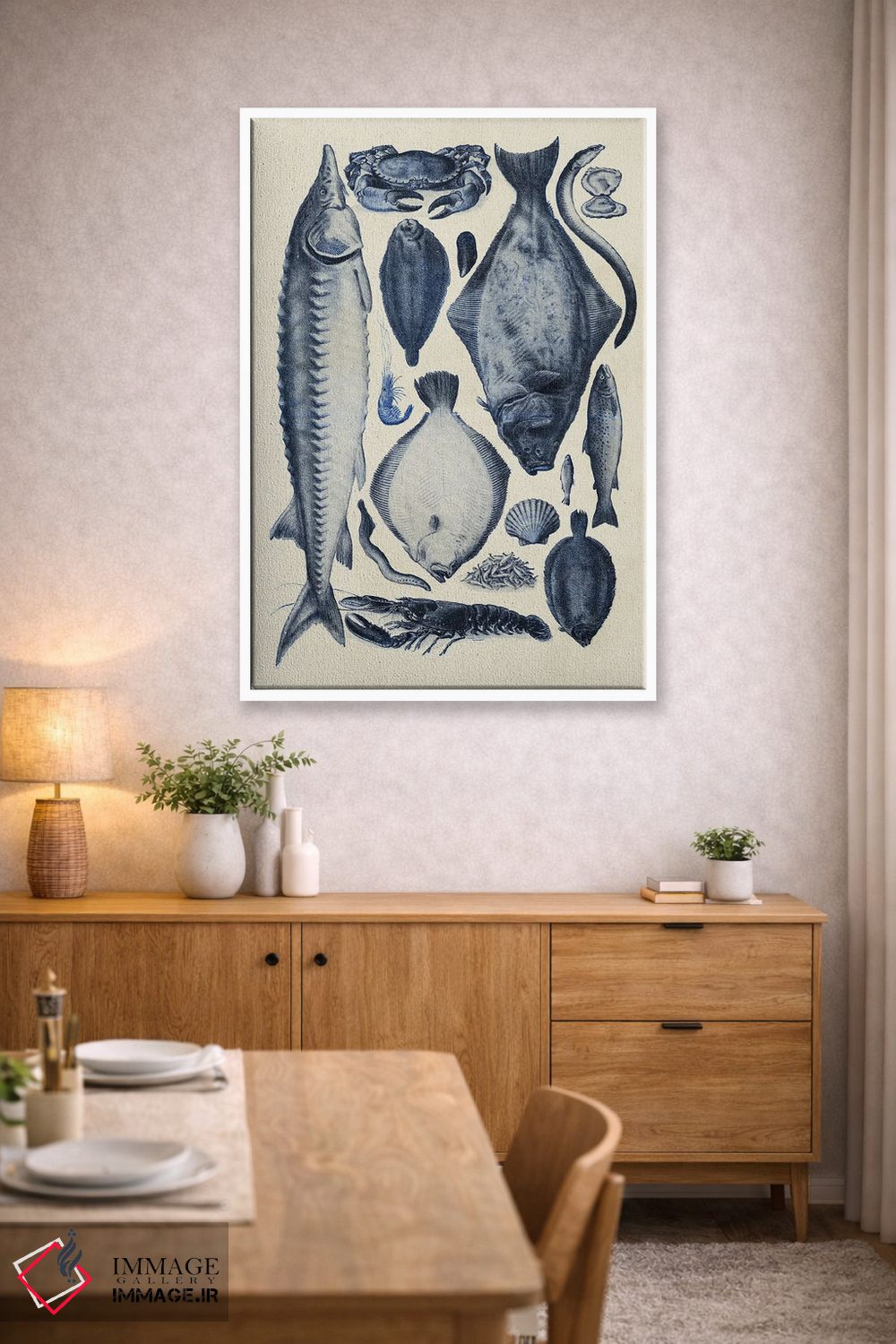 «نمودار ماهی آبی ۲» اثرِ «آلیشیا لانگلی» از آن کارهاییست که گرما و شخصیت به فضا اضافه میکند؛ برای خانههایی با چوب و پارچههای گرم انتخاب خوبیست. با نورپردازی نقطهای، جذابتر هم میشود.