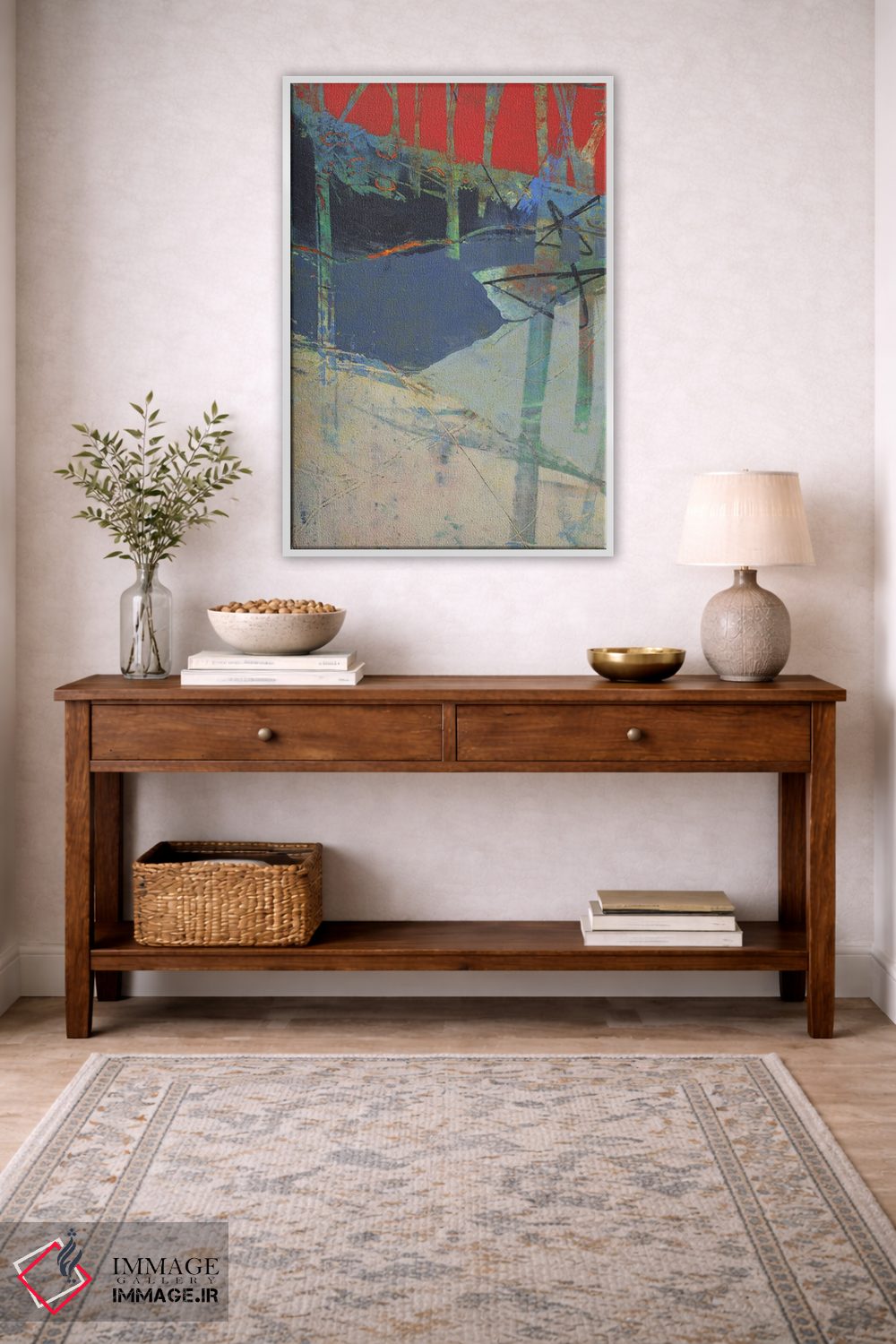 طراحی بوم گالری ایماژ بهگونهای است که اثر روی دیوار «پرداختشده» و حرفهای دیده شود—نه پرزرقوبرقِ بیپایه؛ بلکه دقیق و خوشپرداخت. بافت ظریف کنواس باعث میشود حس اثر هنری را در نگاه نزدیک نگه میدارد بدون اغراق؛ فقط دقیقتر. قابپذیری کمک میکند هماهنگی قاب با پالت رنگ جلوه را تقویت میکند و نتیجه را یکدستتر میکند. این کیفیت برای چیدمانهای دقیقتر و پروژههای حرفهای خودش را بهتر نشان میدهد؛ اگر محیط مینیمال است، همین پرداخت تمیز کافی است.