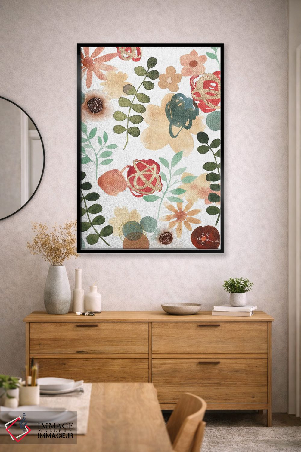 تابلو انتزاعی رقص باغ VI اثر لورا هورن - نمای روبه‌رو روی دیوار