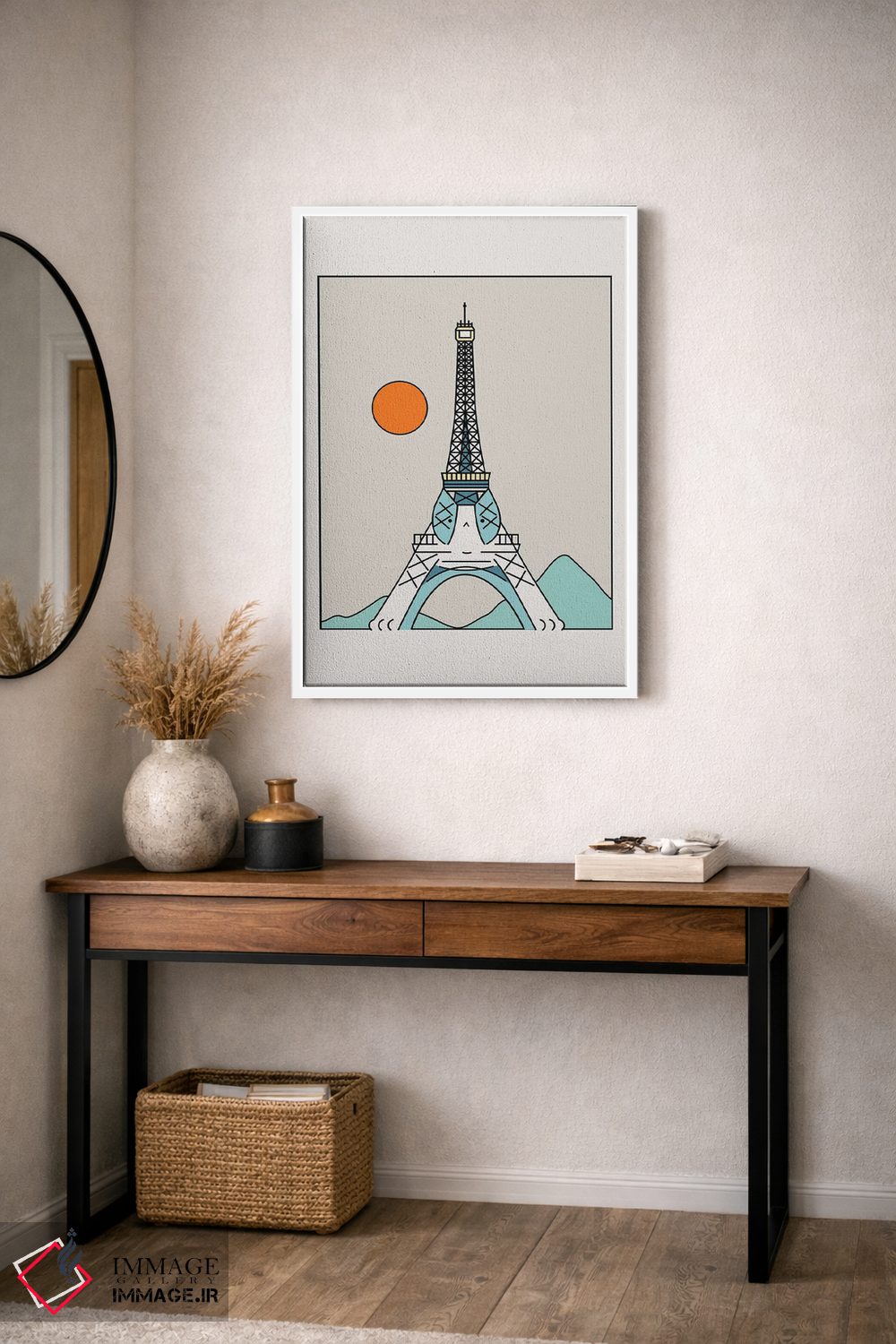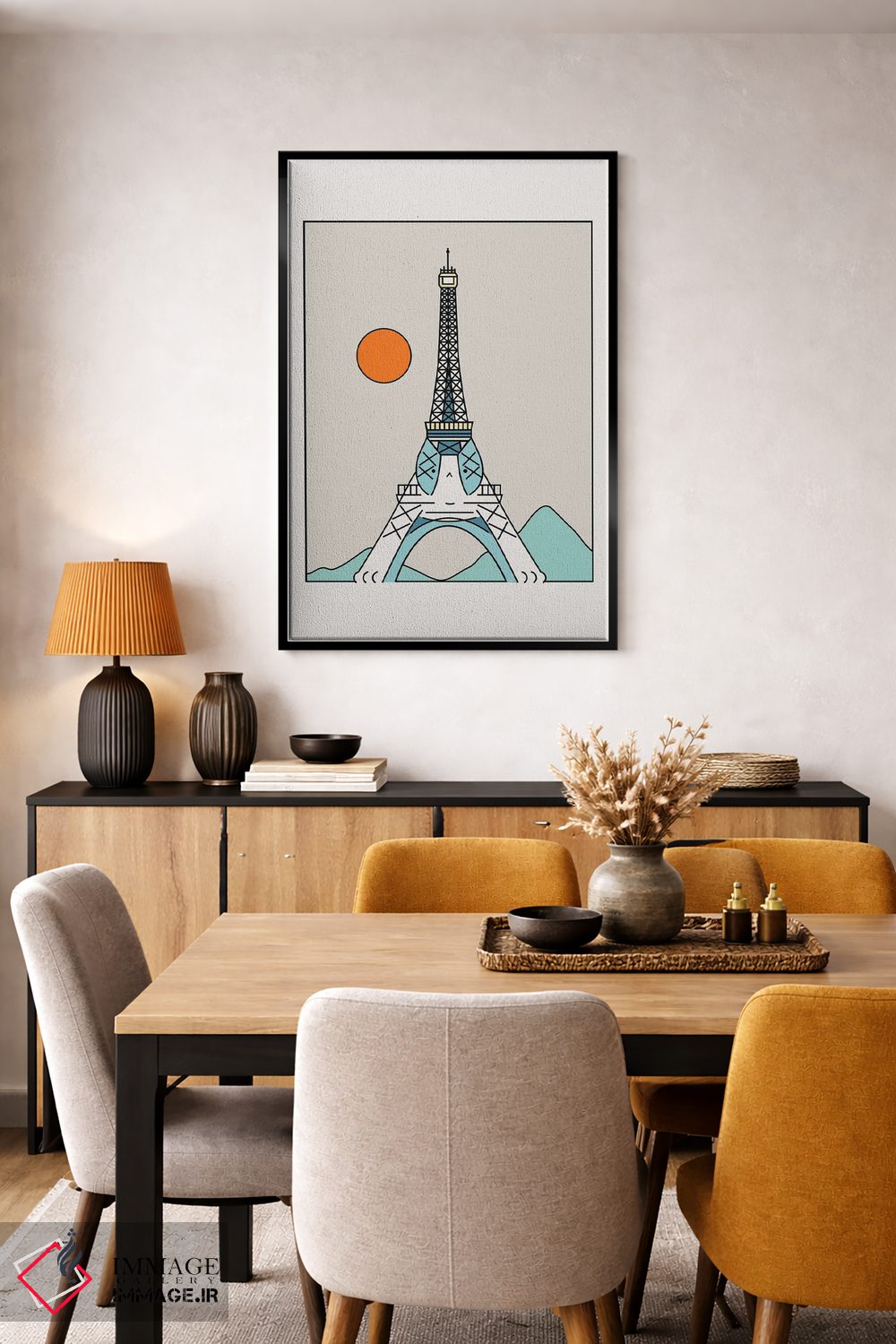 براساس پالت گرم اثر، قاب تیک گرم (چوبی) پیشنهاد اول است و مشکی مات (فریم متوسط) مکمل. برای سفارشهای پروژهای با ابعاد و قابهای اختصاصی با ایماژ در تماس باشید.