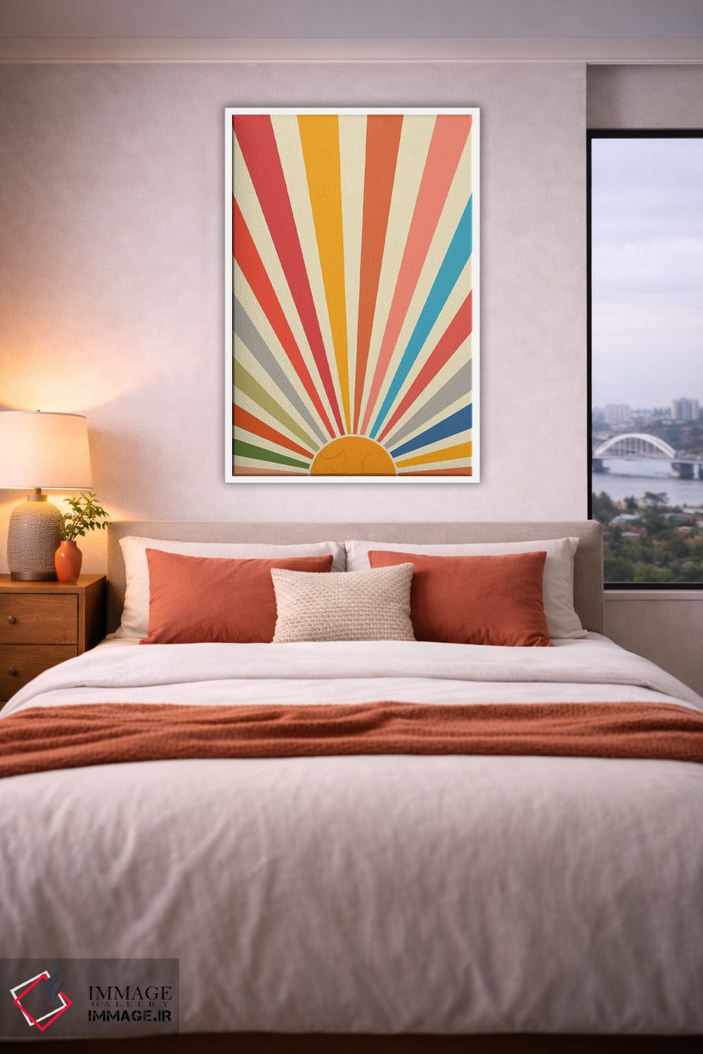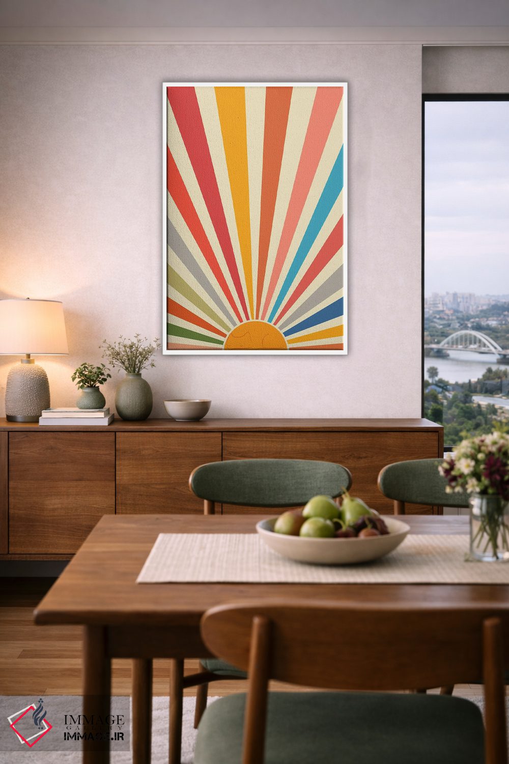 براساس پالت ترکیبی اثر، قاب تیک گرم (چوبی) پیشنهاد اول است و مشکی مات (فریم متوسط) مکمل. برای سفارشهای پروژهای با ابعاد و قابهای اختصاصی با ایماژ در تماس باشید.