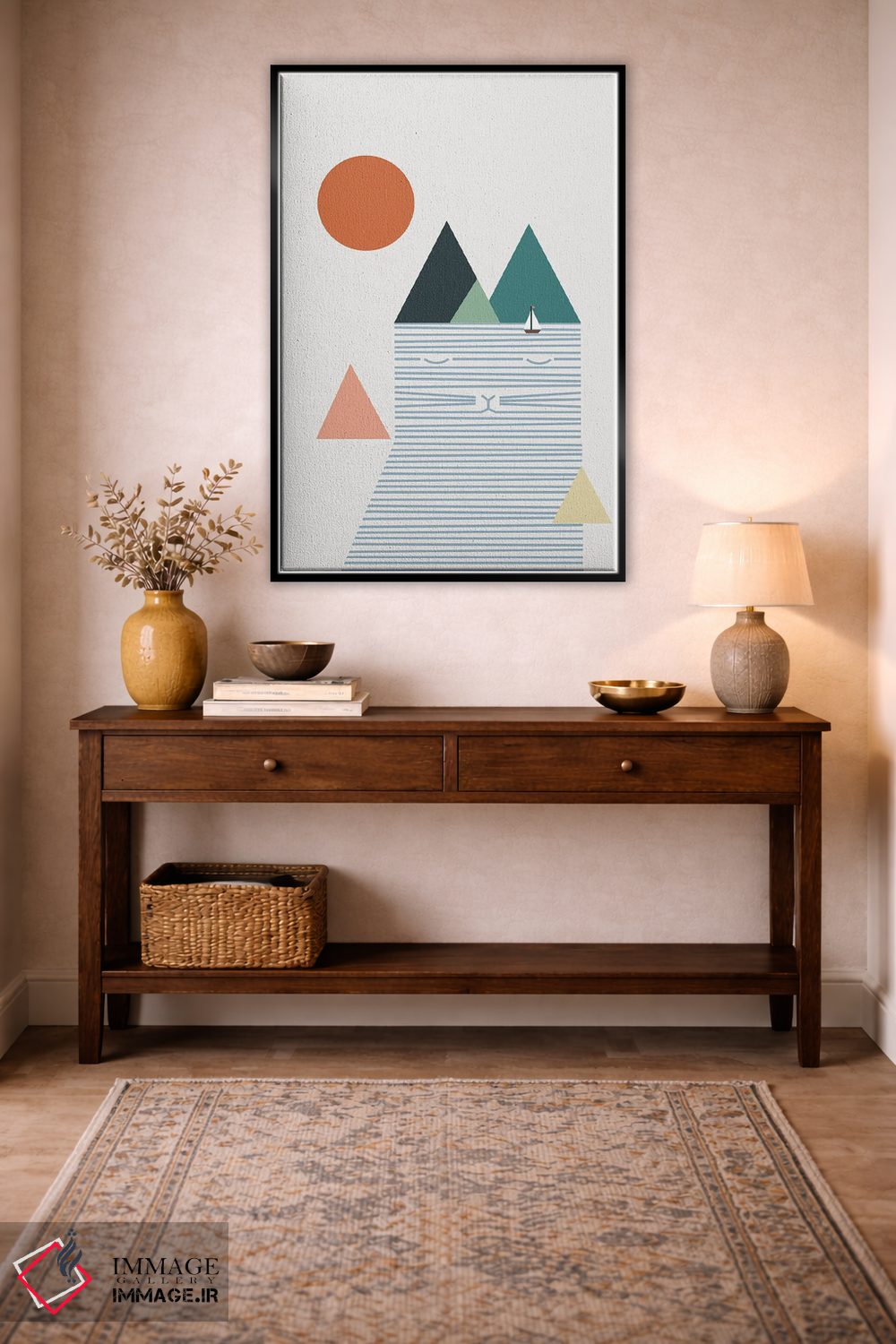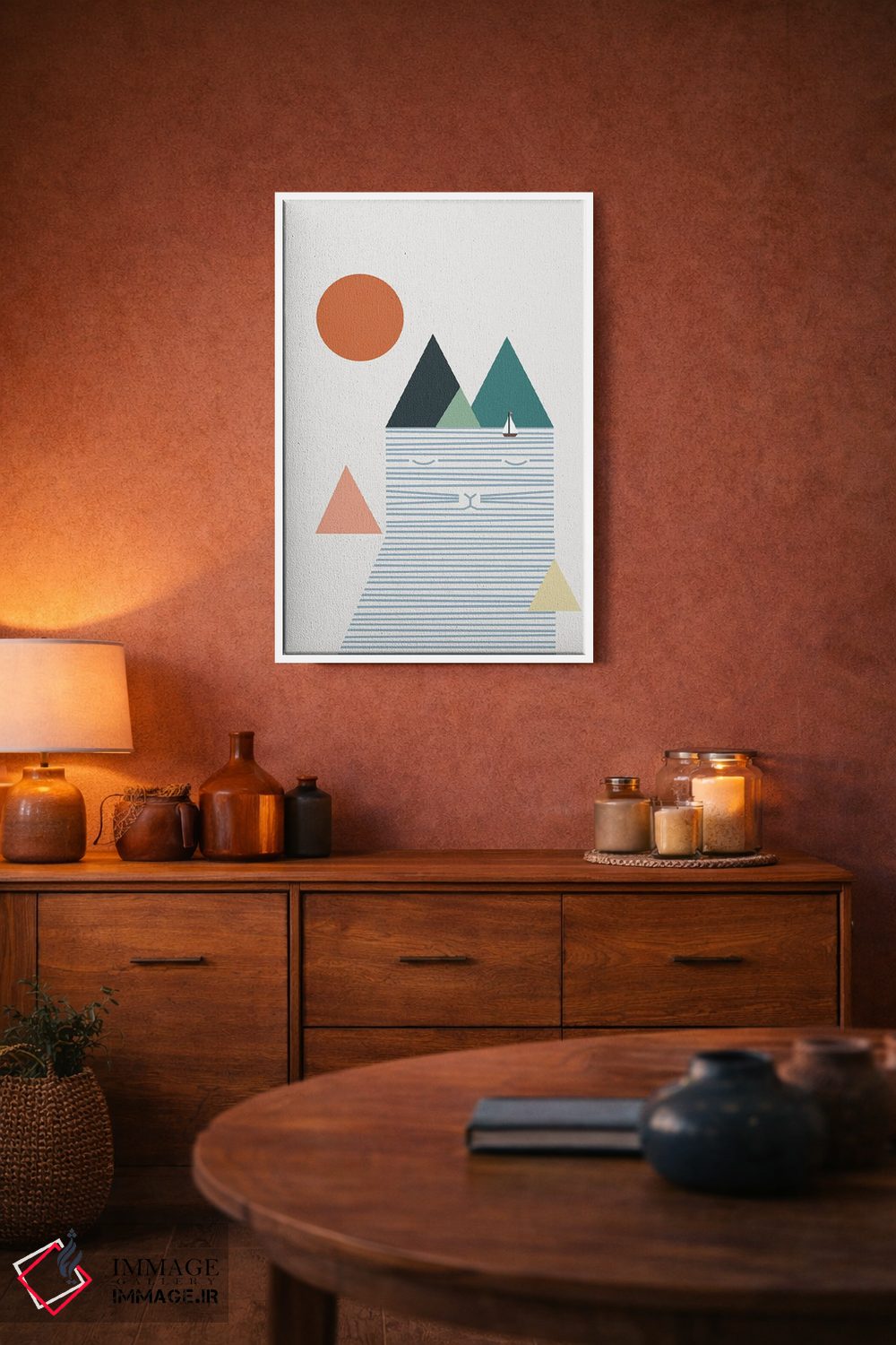 براساس پالت ترکیبی اثر، قاب تیک گرم (چوبی) پیشنهاد اول است و مشکی مات (فریم متوسط) مکمل. برای سفارشهای پروژهای با ابعاد و قابهای اختصاصی با ایماژ در تماس باشید.