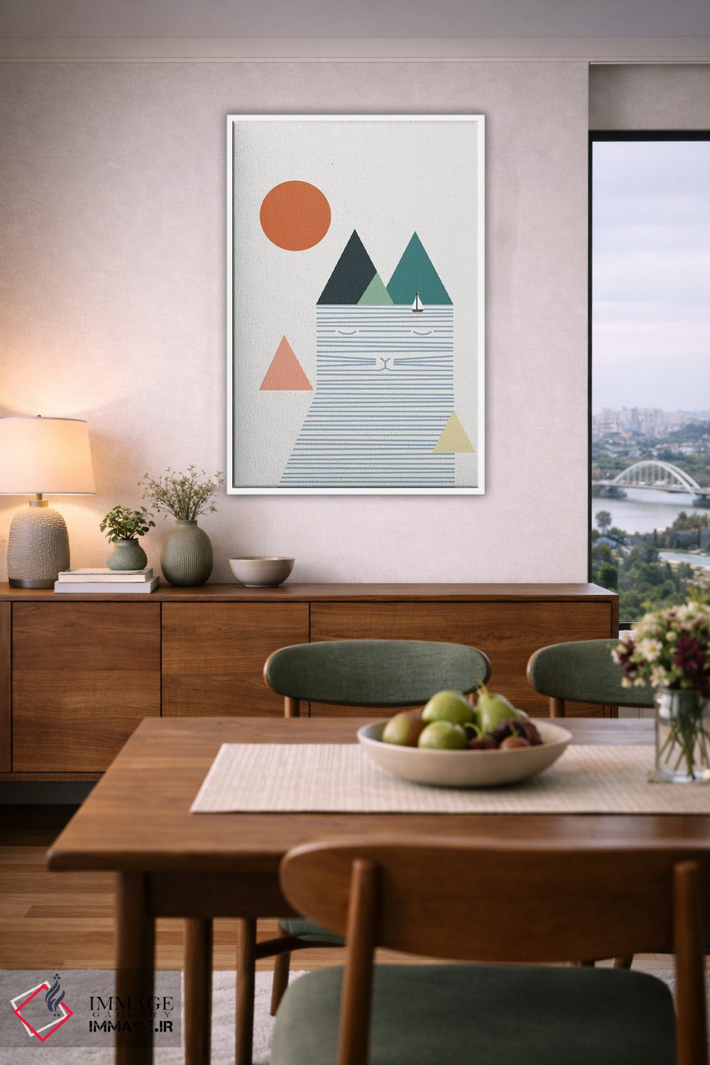 برای دکورهای صمیمی، «منظرهٔ گربه شماره ۵۲» اثرِ «لیم هنگ سوی» مثل یک امضای بامزه اما متین عمل میکند؛ برای دکورهایی با رنگهای خنثی انتخابی خوشسلیقه است. هم فضا را گرم میکند، هم شلوغش نمیکند.