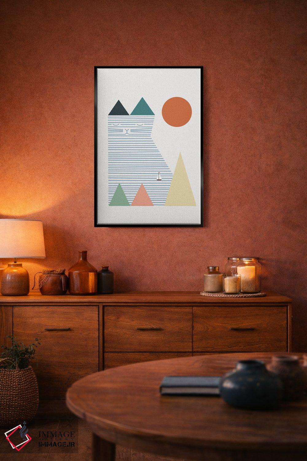 براساس پالت ترکیبی اثر، قاب تیک گرم (چوبی) پیشنهاد اول است و مشکی مات (فریم متوسط) مکمل. برای سفارشهای پروژهای با ابعاد و قابهای اختصاصی با ایماژ در تماس باشید.