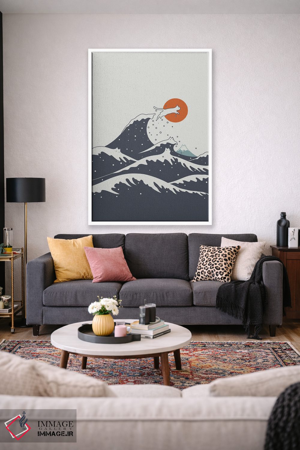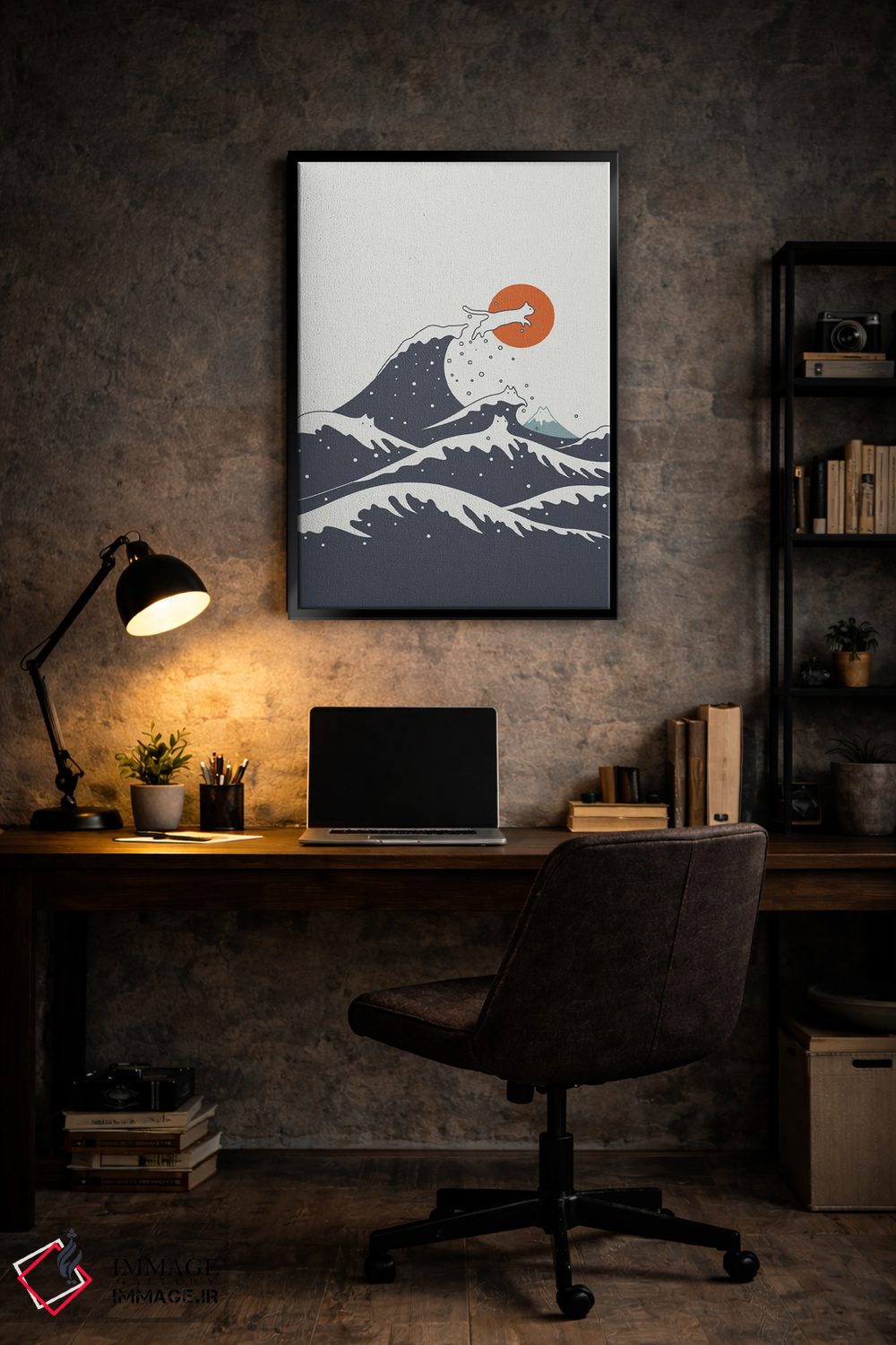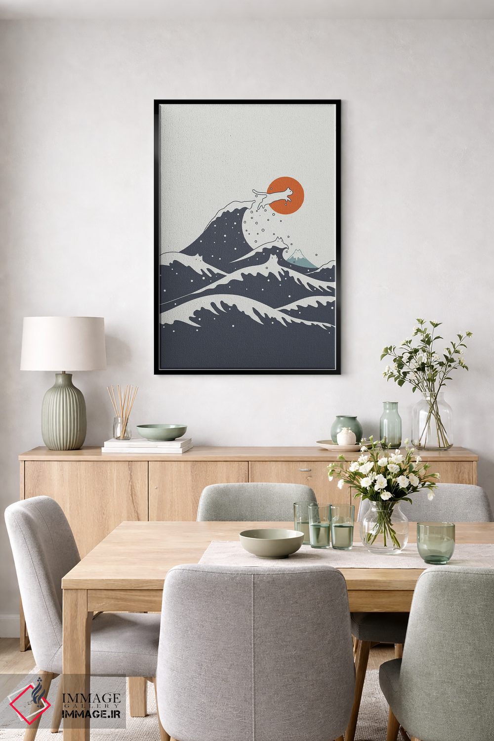 براساس پالت گرم اثر، قاب تیک گرم (چوبی) پیشنهاد اول است و مشکی مات (فریم متوسط) مکمل. برای سفارشهای پروژهای با ابعاد و قابهای اختصاصی با ایماژ در تماس باشید.