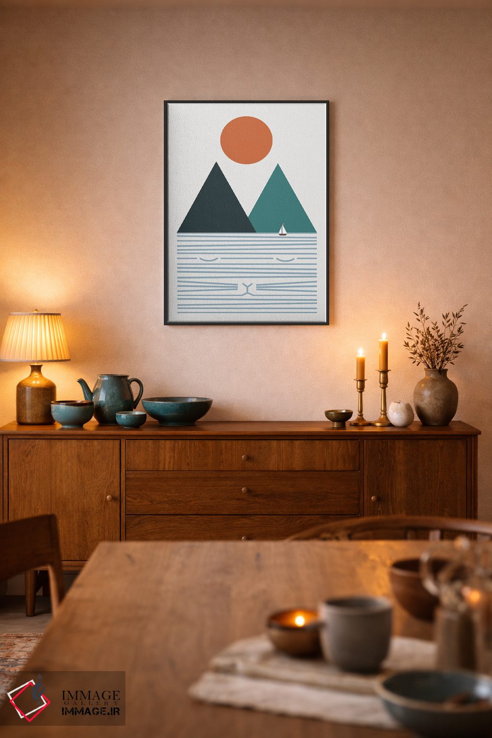 براساس پالت ترکیبی اثر، قاب تیک گرم (چوبی) پیشنهاد اول است و مشکی مات (فریم متوسط) مکمل. برای سفارشهای پروژهای با ابعاد و قابهای اختصاصی با ایماژ در تماس باشید.