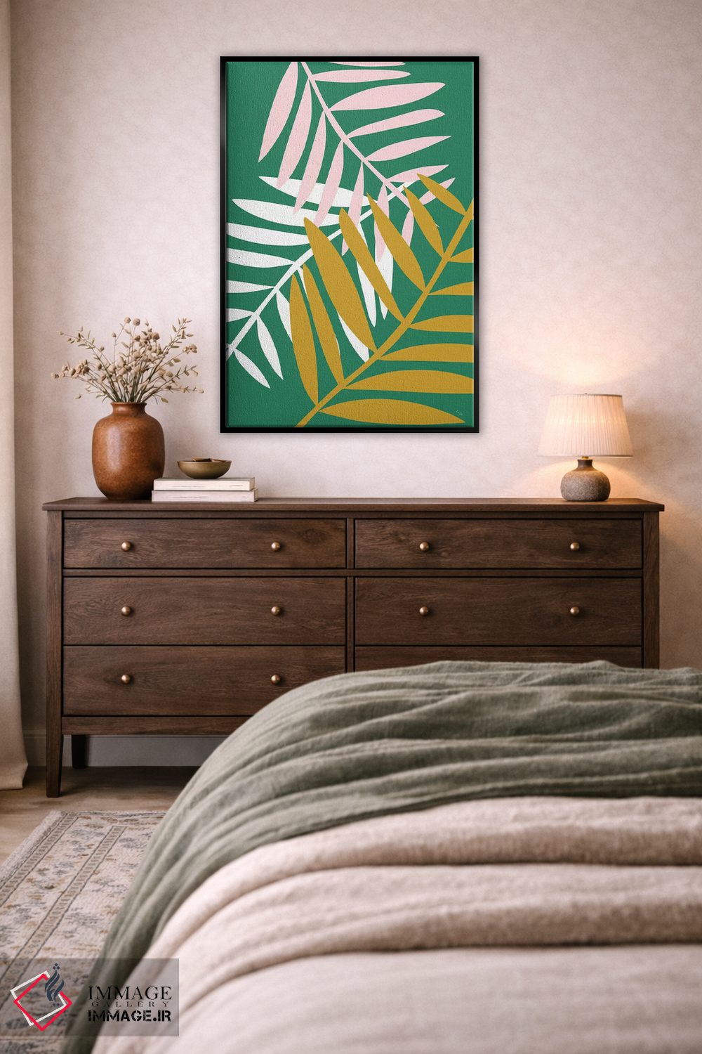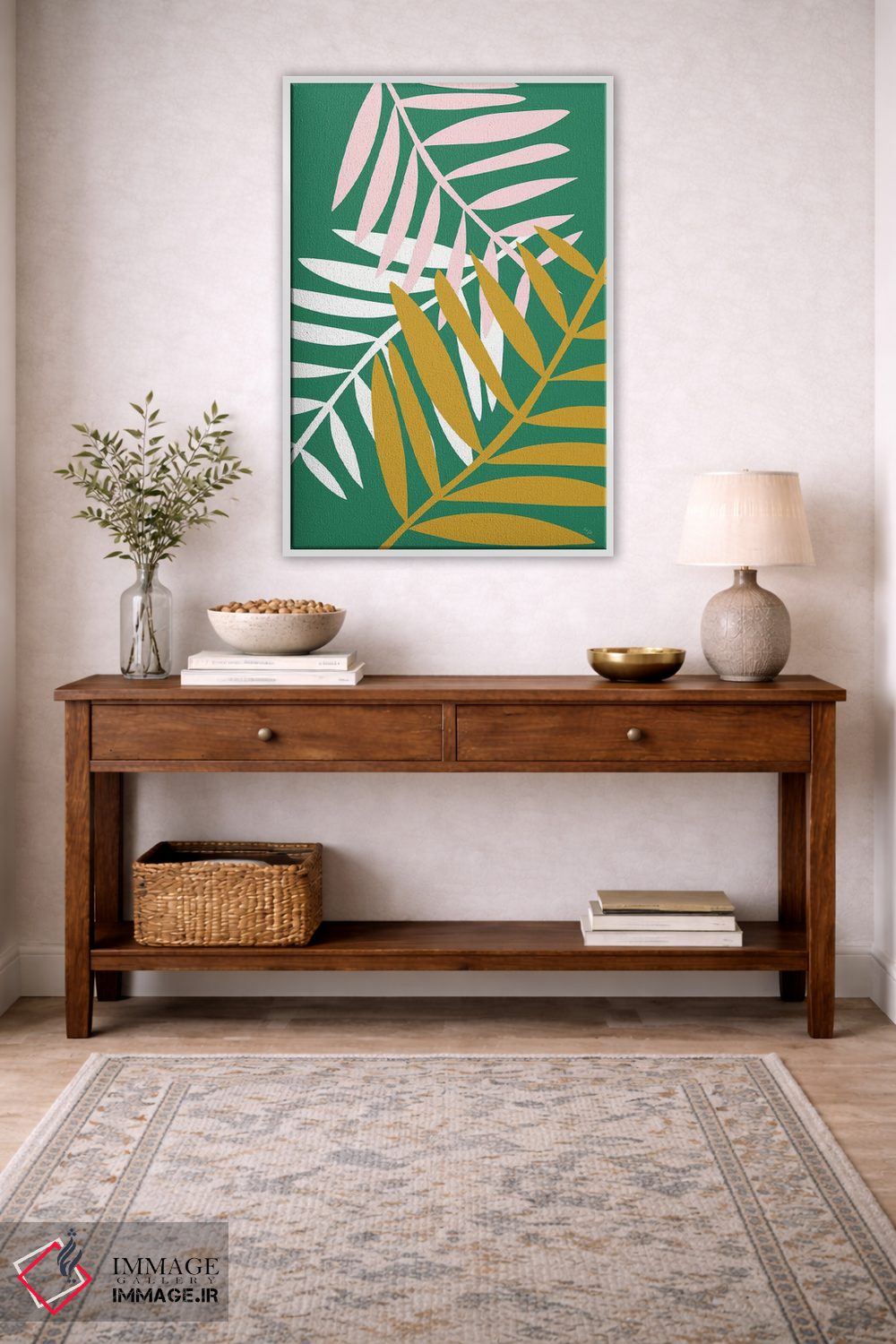 «برگهای نخل سبز» اثرِ «لیندا گوبتا» با حس بوهمی، برای خانههای گرم و صمیمی ساخته شده؛ موضوعِ این اثر در آن خوب مینشیند.