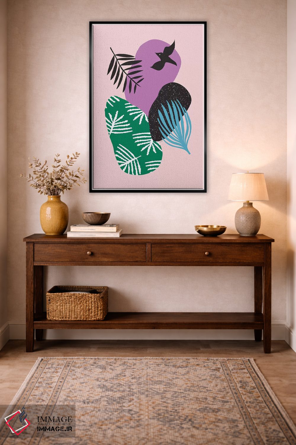 بوم گالری ایماژ طوری طراحی شده که اثر روی دیوار «پرداختشده» و حرفهای دیده شود—نه پرزرقوبرقِ بیپایه؛ بلکه دقیق و خوشپرداخت. با بافت ظریف کنواس، حس اثر هنری را در نگاه نزدیک نگه میدارد و نتیجه را یکدستتر میکند. در ارائهی آماده نصب، برای یک ارائهی حرفهای ضروری است. حاصل کار، یک تابلو خوشنشین است که هم از دور اثرگذار است و هم از نزدیک خوشخوان؛ و اگر بخواهید، میتوان چیدمان را برای گالریوال هم پیشنهاد داد.