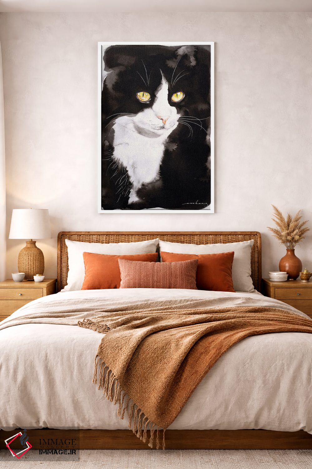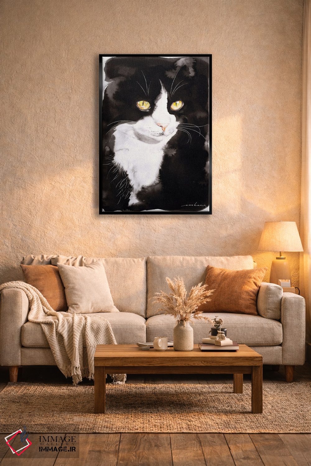 براساس پالت گرم اثر، قاب تیک گرم (چوبی) پیشنهاد اول است و مشکی مات (فریم متوسط) مکمل. برای سفارشهای پروژهای با ابعاد و قابهای اختصاصی با ایماژ در تماس باشید.