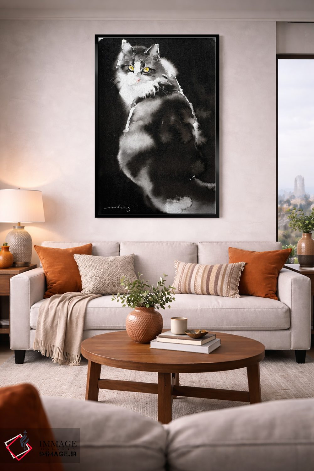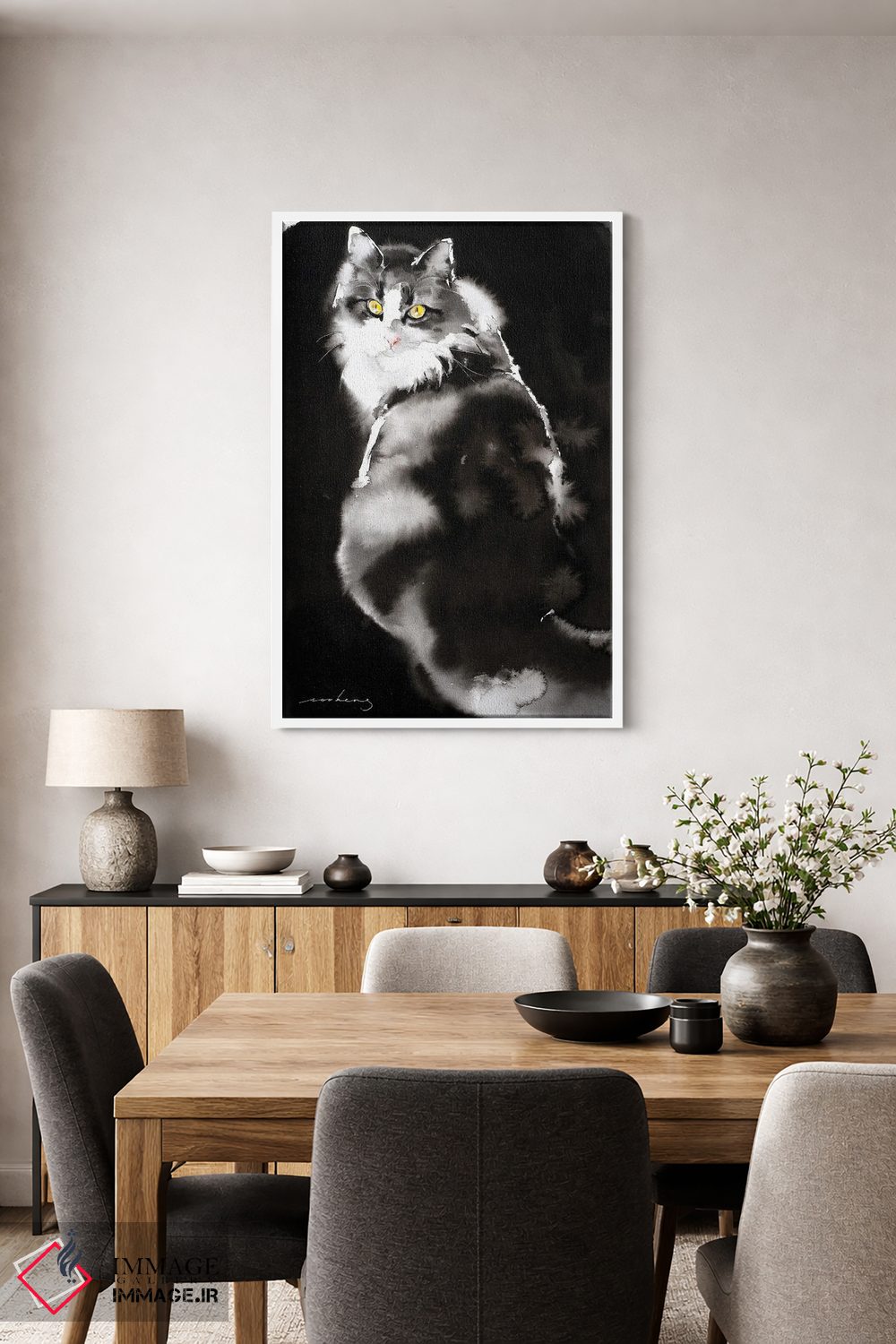 براساس پالت خنثی اثر، قاب مشکی مات (فریم باریک) پیشنهاد اول است و سفید مات (فریم باریک) مکمل. برای سفارشهای پروژهای با ابعاد و قابهای اختصاصی با ایماژ در تماس باشید.