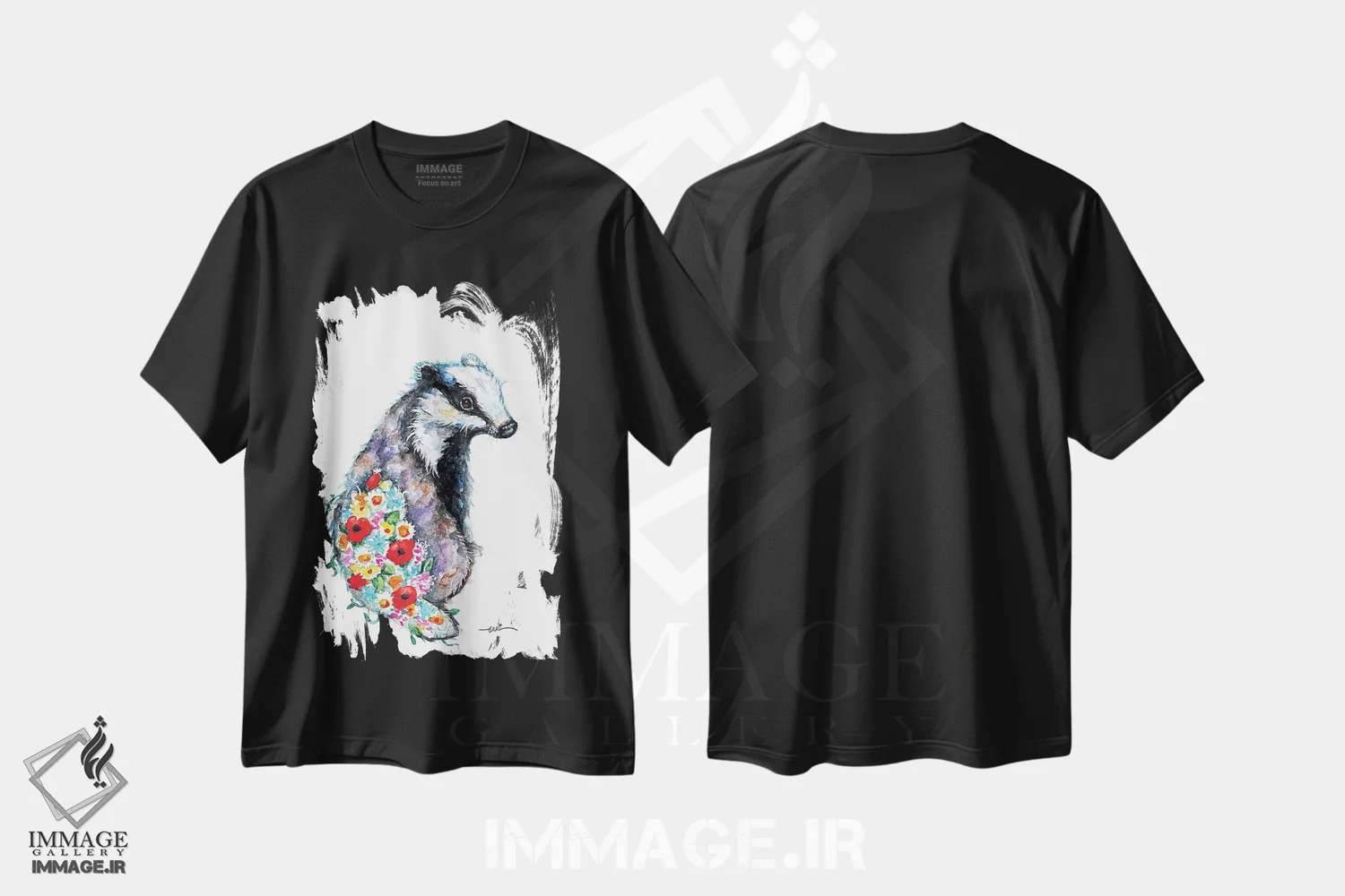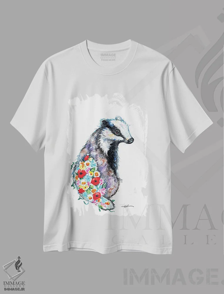 ترکیب هنری گورکن شکوفه دهنده روی تیشرت نخ پنبه ای
