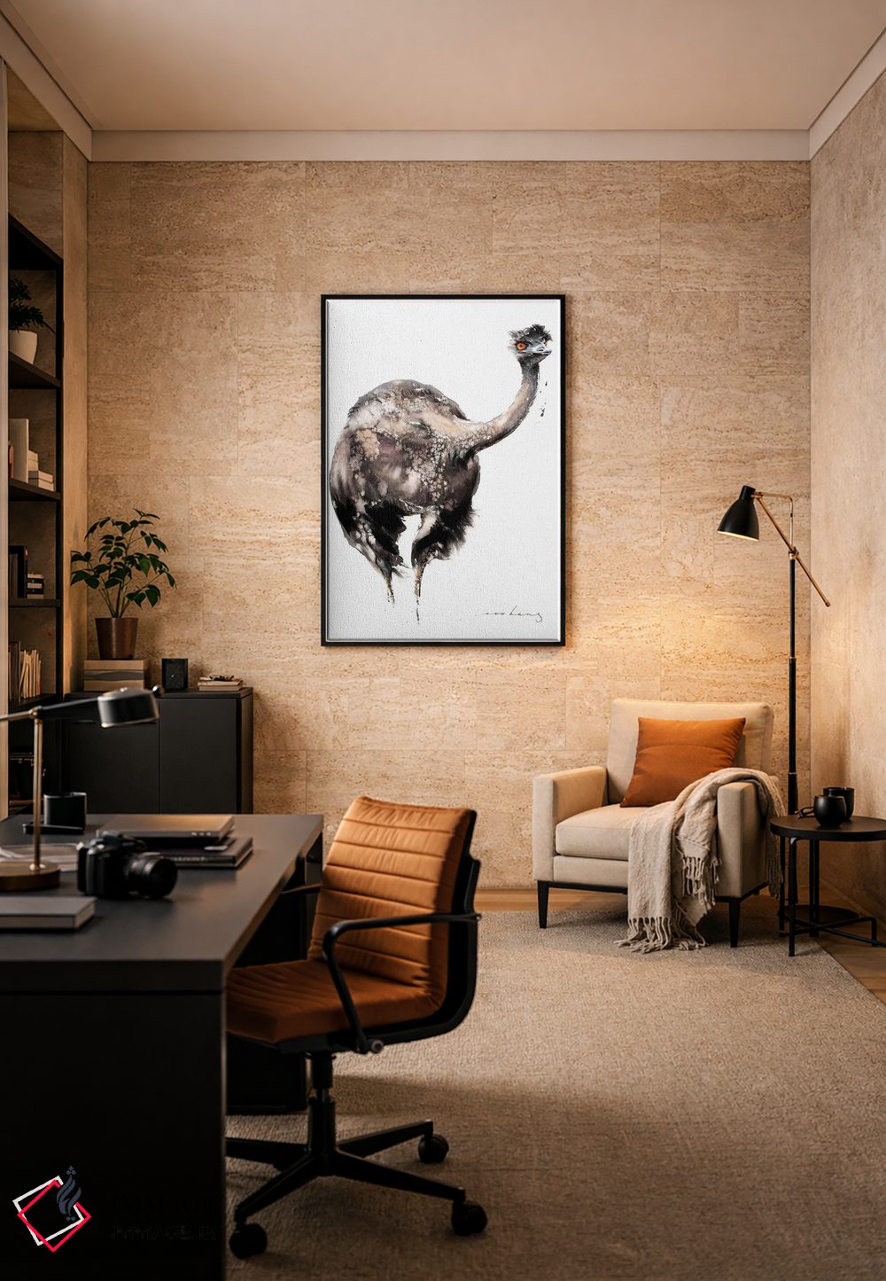 برای دکورهای صمیمی، «شترمرغ دونده V» اثرِ «سو بنگ لیم» بافت و جزئیات را طوری نشان میدهد که نگاه میماند؛ برای هدیهدادن به دوستداران حیوانات انتخابی خوشسلیقه است. حسش صمیمی است، اما کیفیتش جدی و خوشپرداخت.