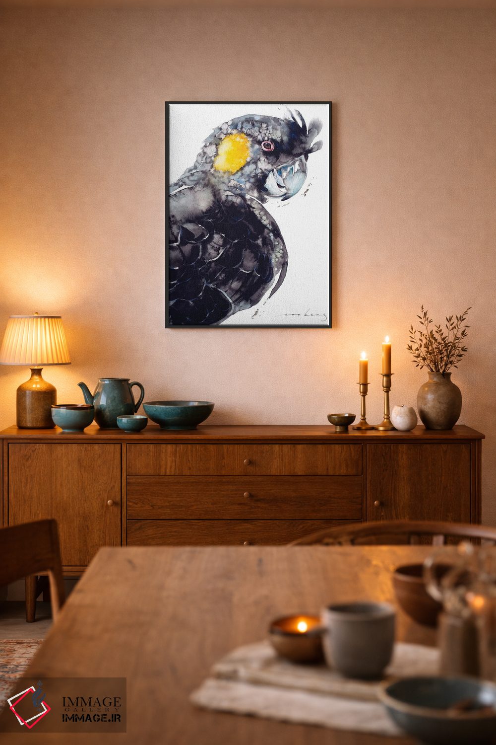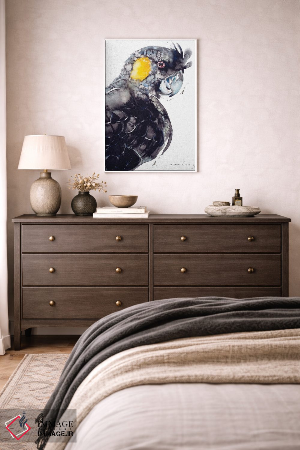 برای اتاقی که به یک عنصر دوستداشتنی نیاز دارد، «کاکاتو سیاه دمزرد» اثرِ «سو بنگ لیم» به دیوار، انرژیِ نرم و زنده میدهد؛ برای دکورهای مدرن و مینیمال انتخابی خوشسلیقه است. به دیوار، قصه میدهد—اما قصهای آرام و شیک.