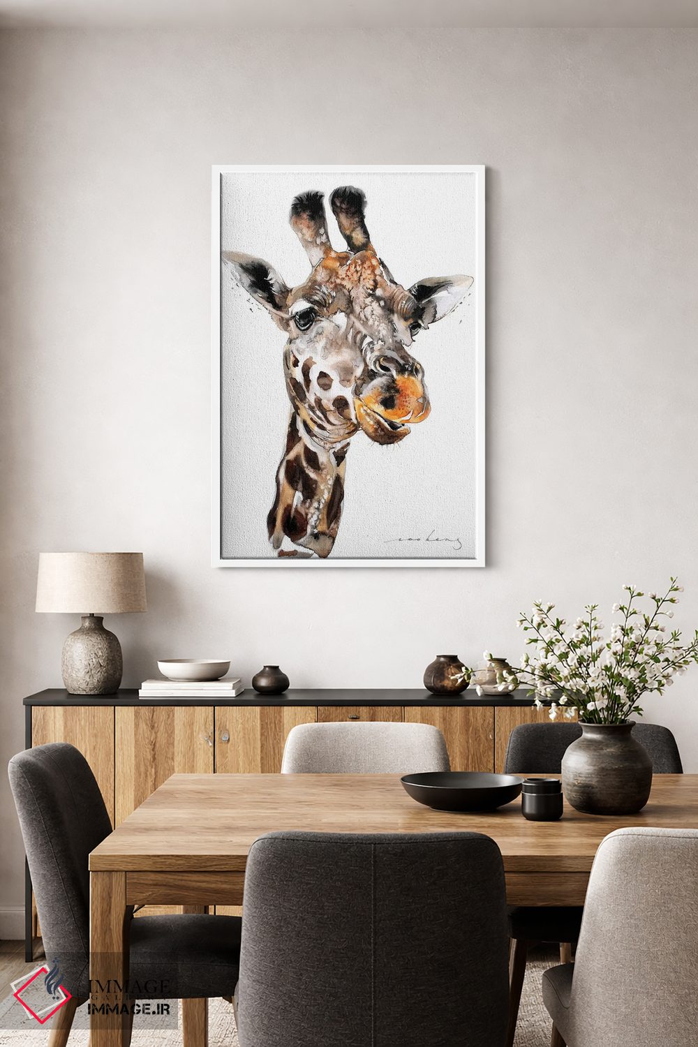 اگر میخواهید دیوار کمی سرزندگیِ محترمانه داشته باشد، «زرافه III» اثرِ «سو بنگ لیم» گرما و شخصیت به فضا اضافه میکند، برای راهروها و ورودیهای گرم گزینهٔ مناسبیست. اگر دنبال اثر دوستداشتنیِ «بیغلو» هستید، این یکی دقیق مینشیند.