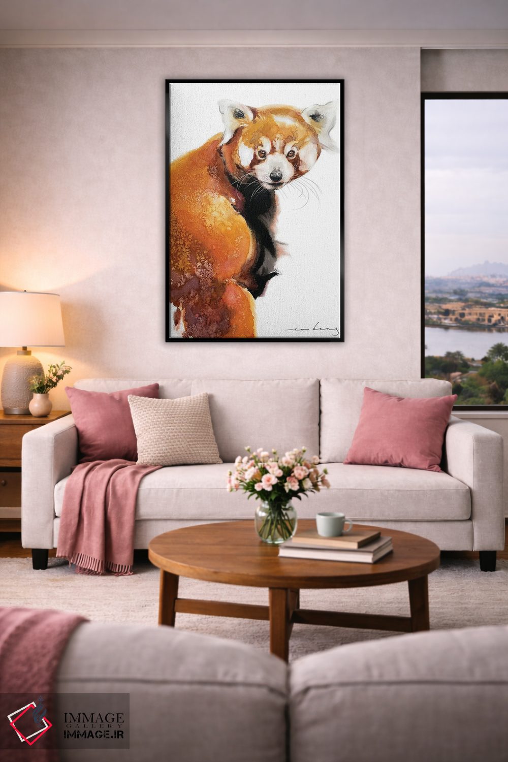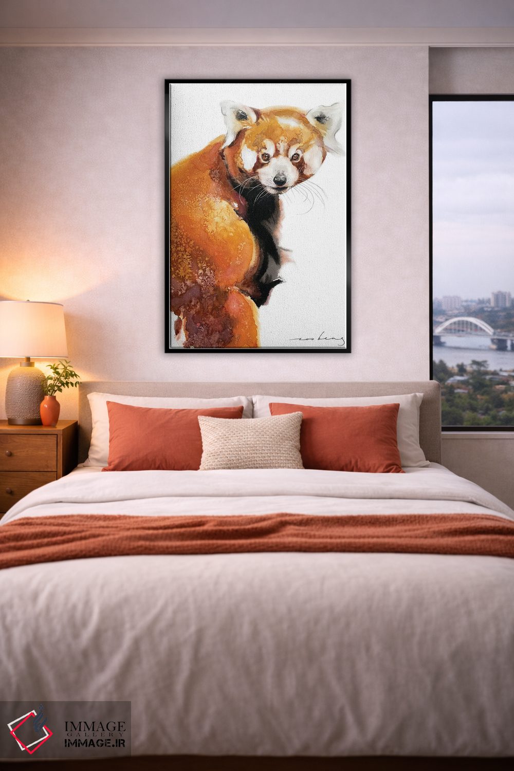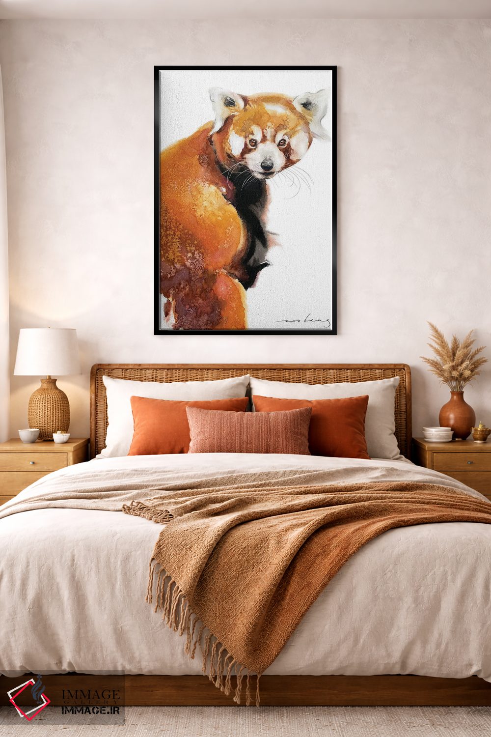 برای دیوارهای ساده، «افسون پاندا قرمز» اثرِ «سو بنگ لیم» فضا را صمیمیتر و دعوتکنندهتر نشان میدهد؛ برای اتاق بازی یا گوشهٔ مطالعه انتخابی خوشسلیقه است. هم فضا را گرم میکند، هم شلوغش نمیکند.