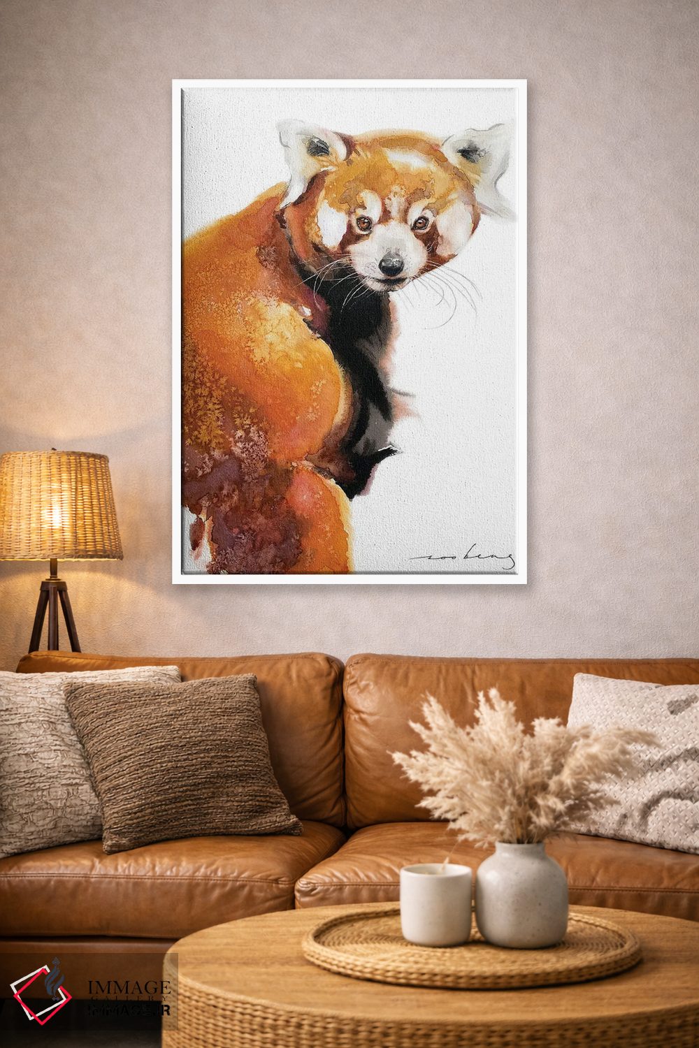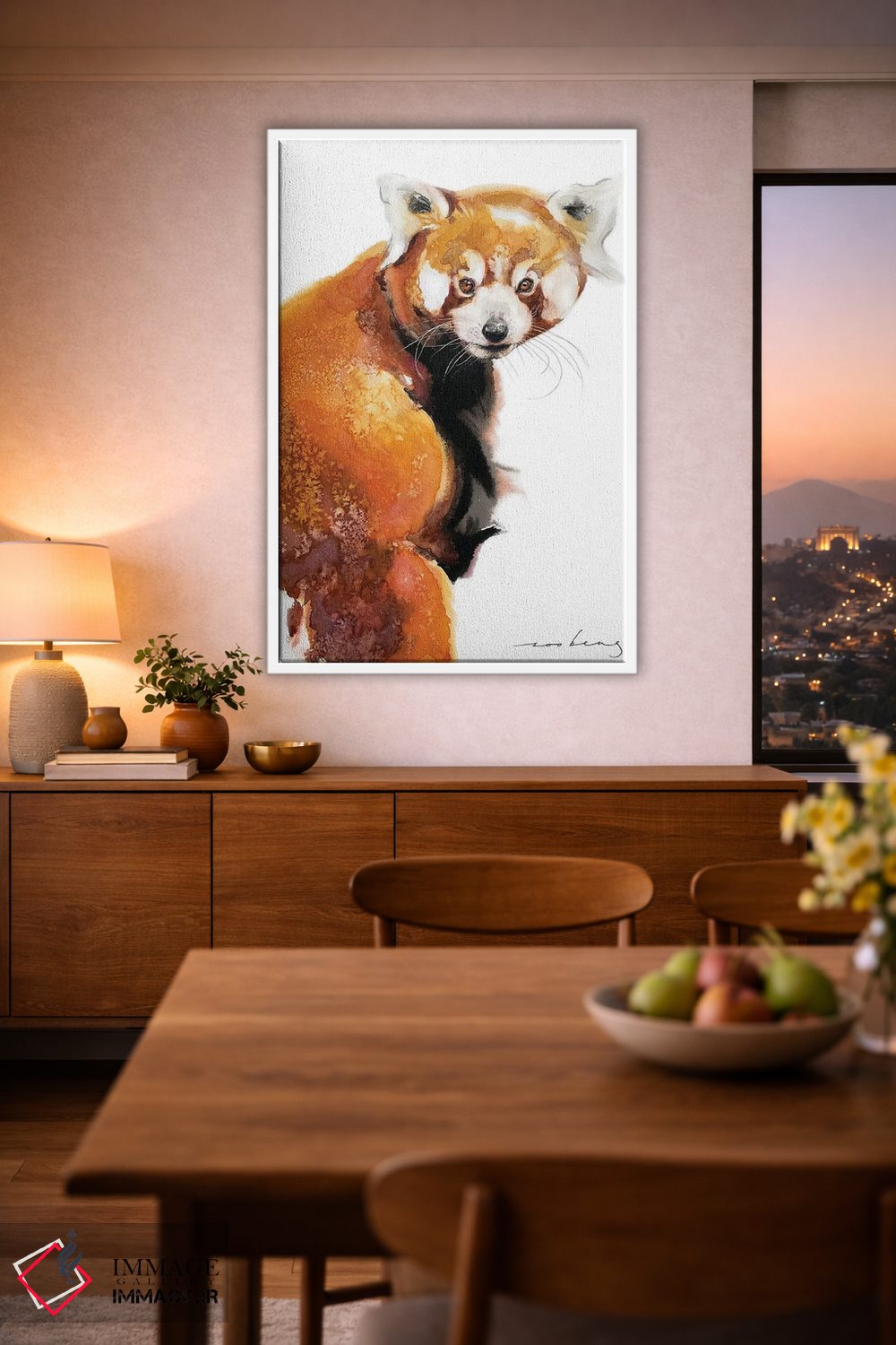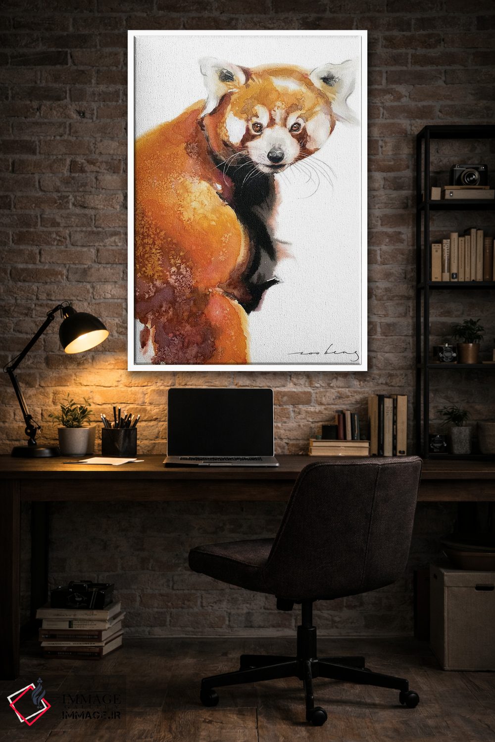 برای دیوارهای ساده، «افسون پاندا قرمز» اثرِ «سو بنگ لیم» فضا را صمیمیتر و دعوتکنندهتر نشان میدهد؛ برای اتاق بازی یا گوشهٔ مطالعه انتخابی خوشسلیقه است. هم فضا را گرم میکند، هم شلوغش نمیکند.