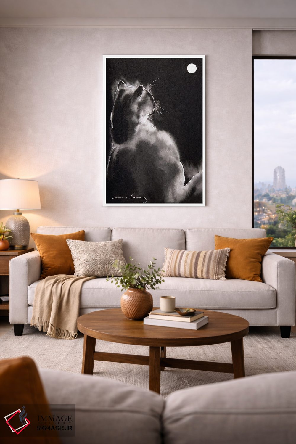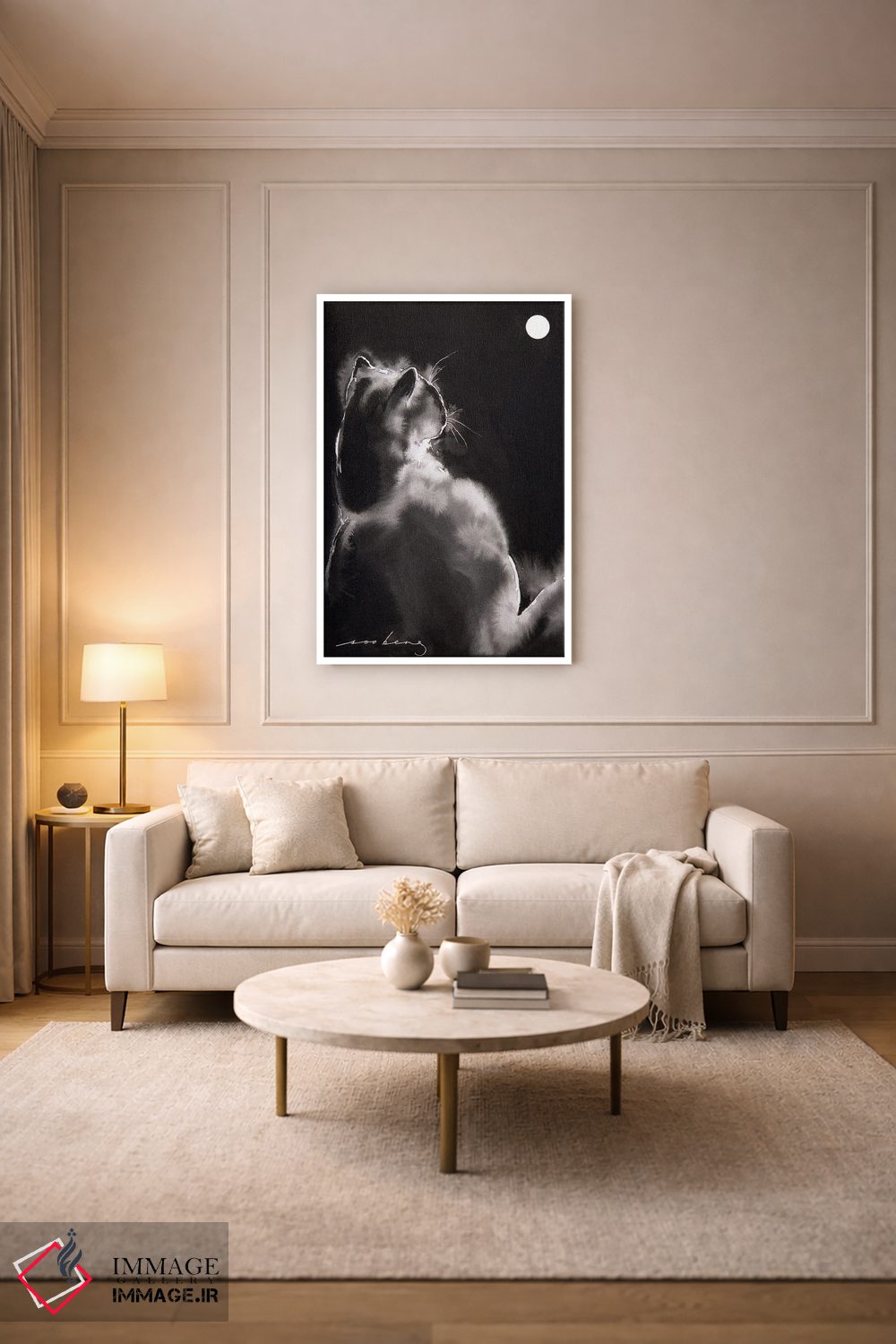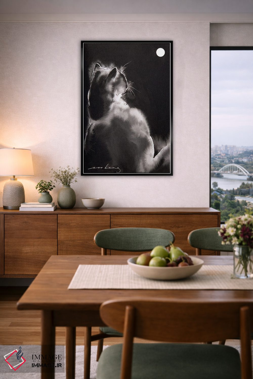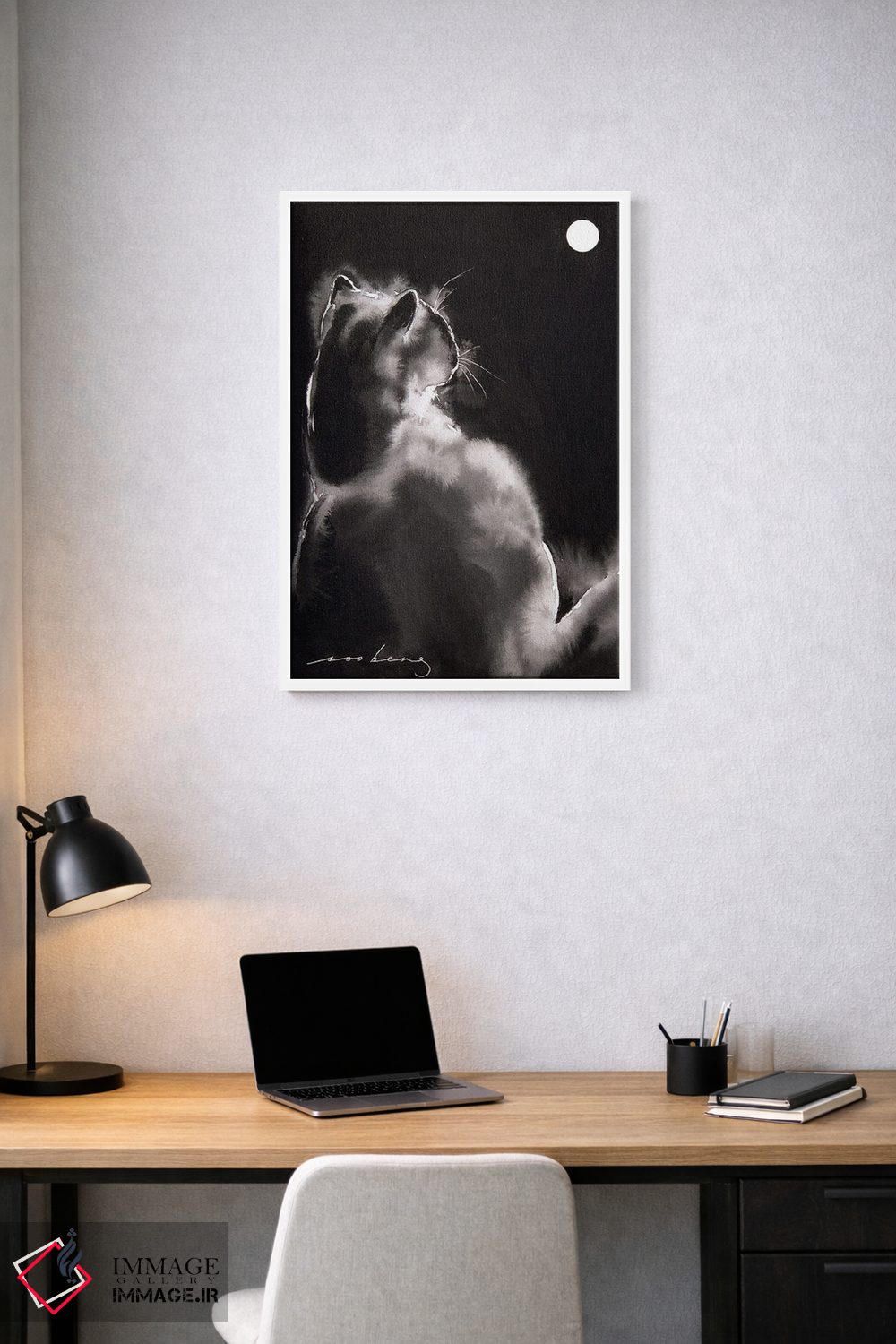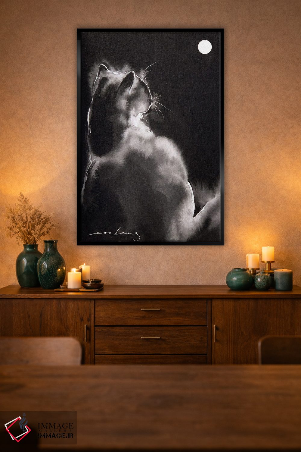 تابلو دکوراتیو گربه زیر نور ماه اثر سو بنگ لیم