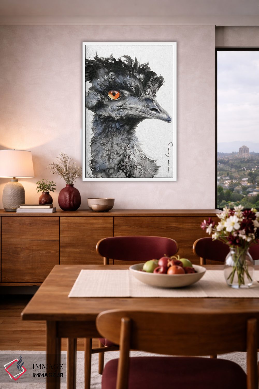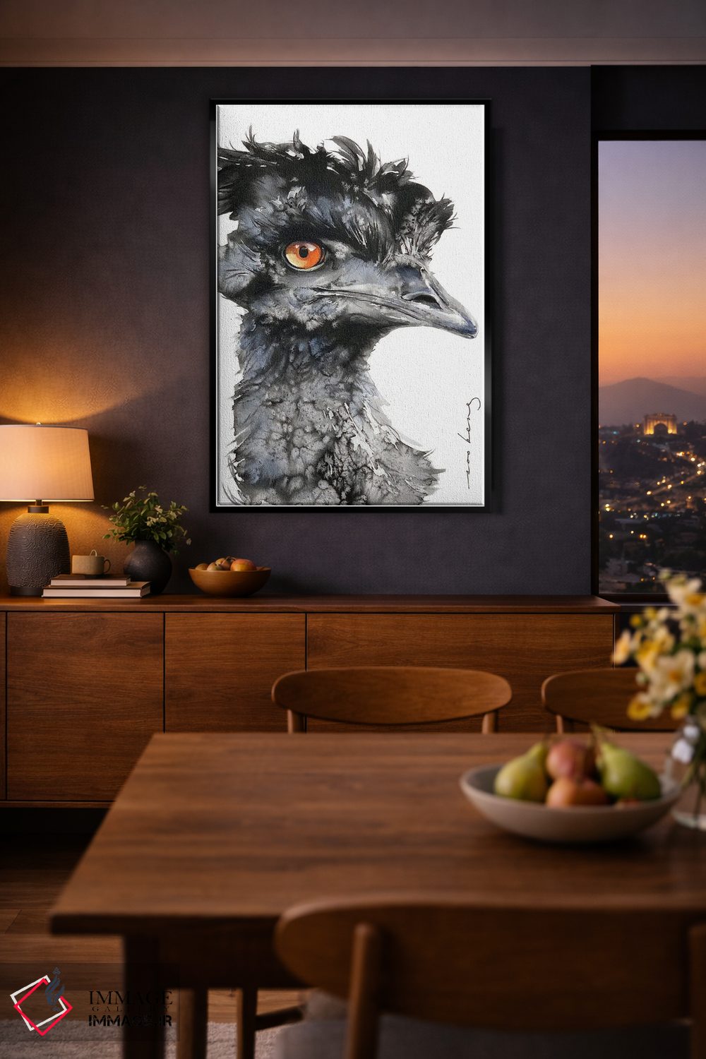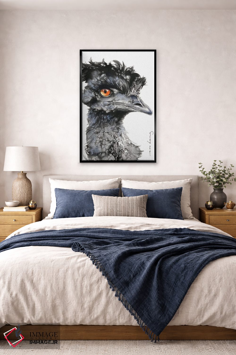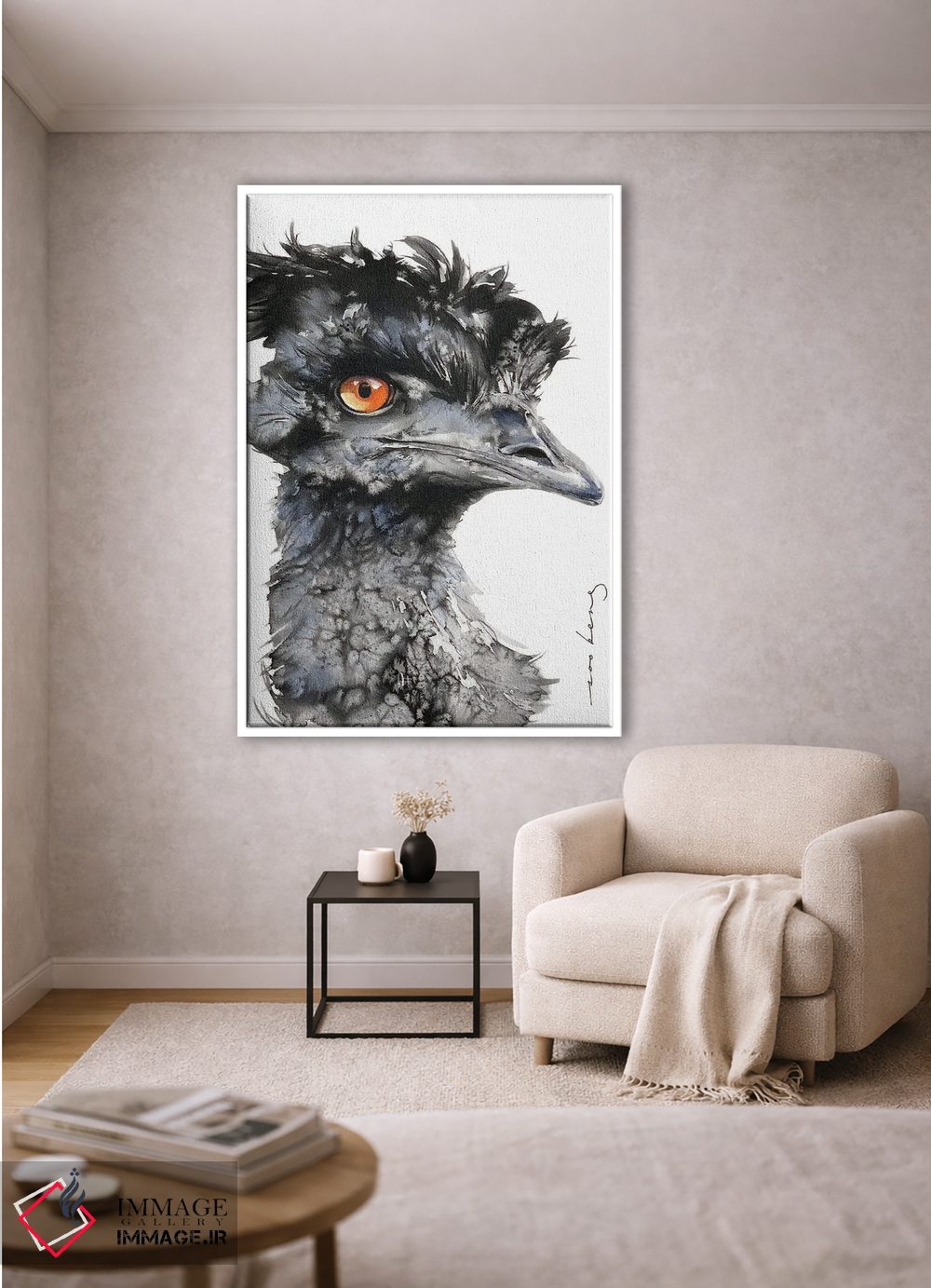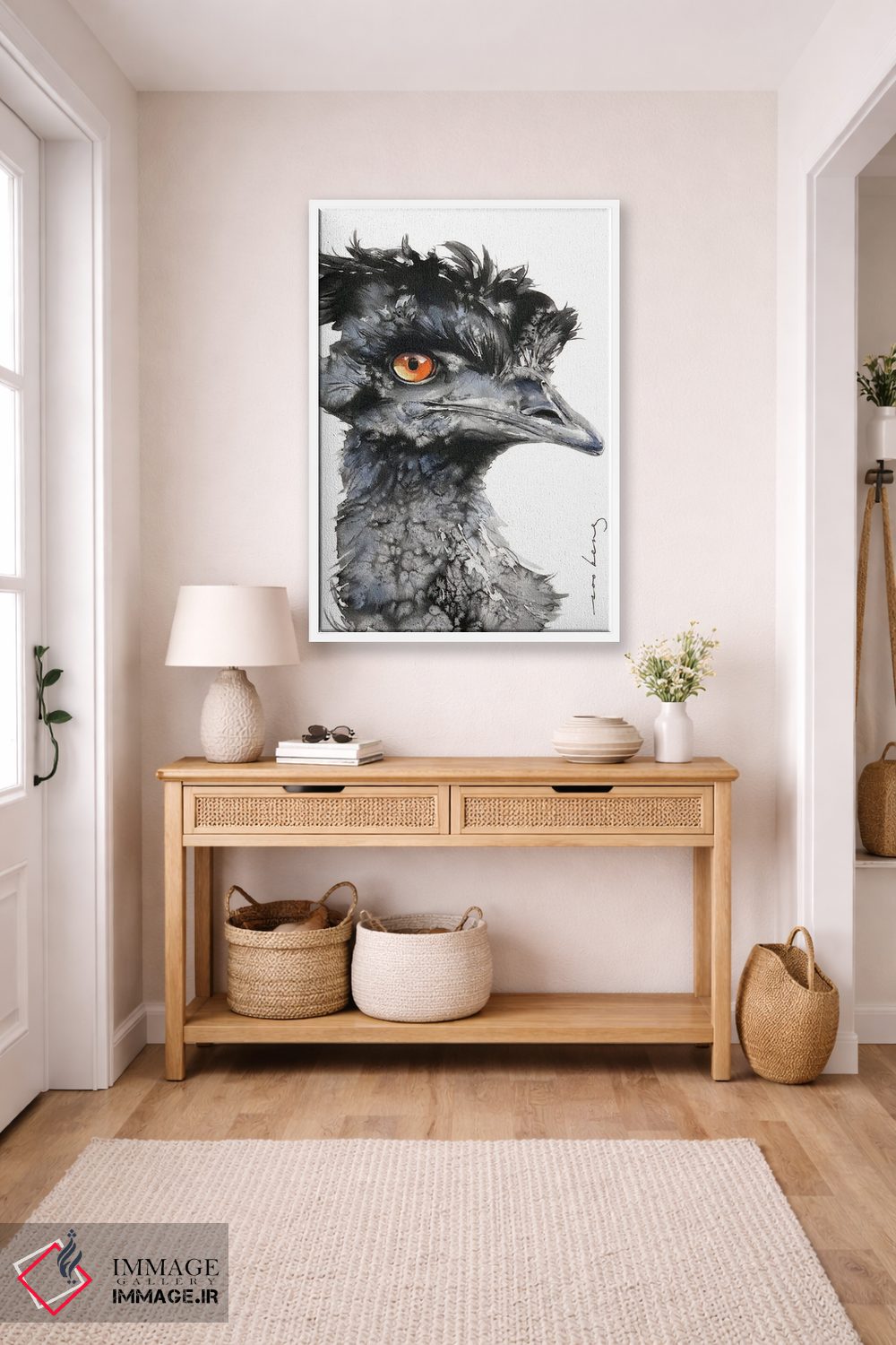برای دیوارهای ساده، «شترمرغ کنجکاو (امو)» اثرِ «سو بنگ لیم» برای دکورهای مینیمال، یک نقطهٔ توجه میسازد؛ برای دیوار کنار میز کار انتخابی خوشسلیقه است. حسش صمیمی است، اما کیفیتش جدی و خوشپرداخت.