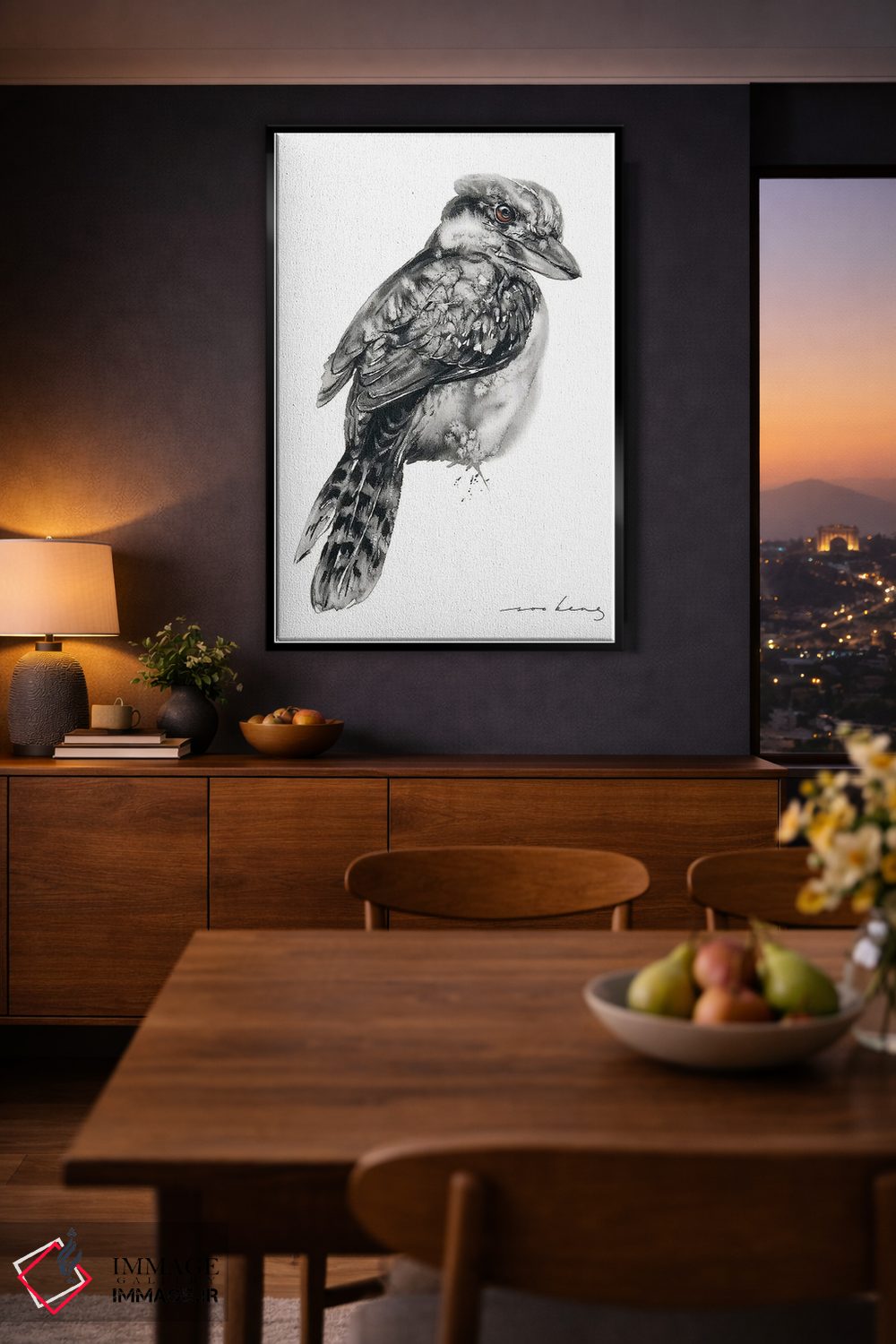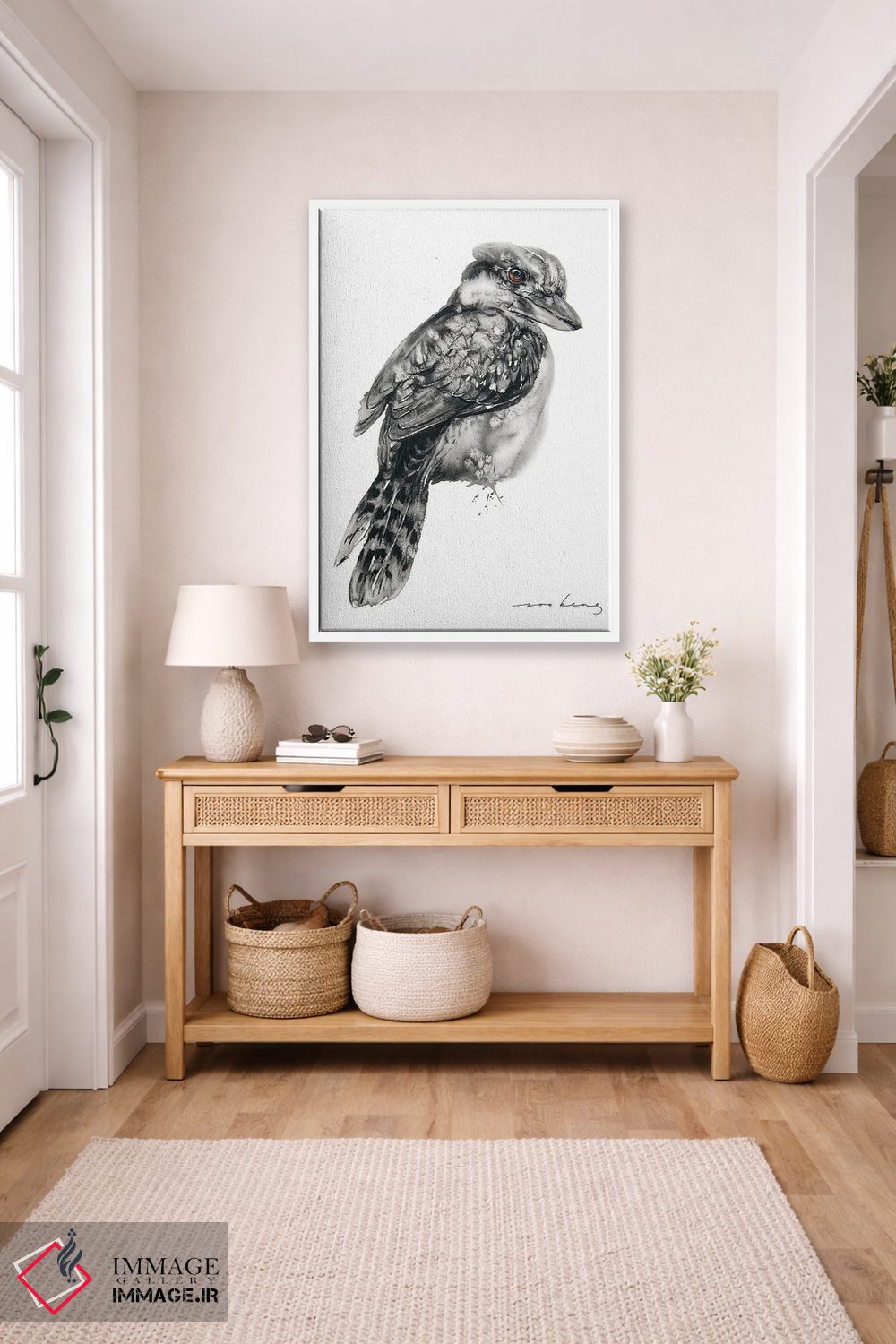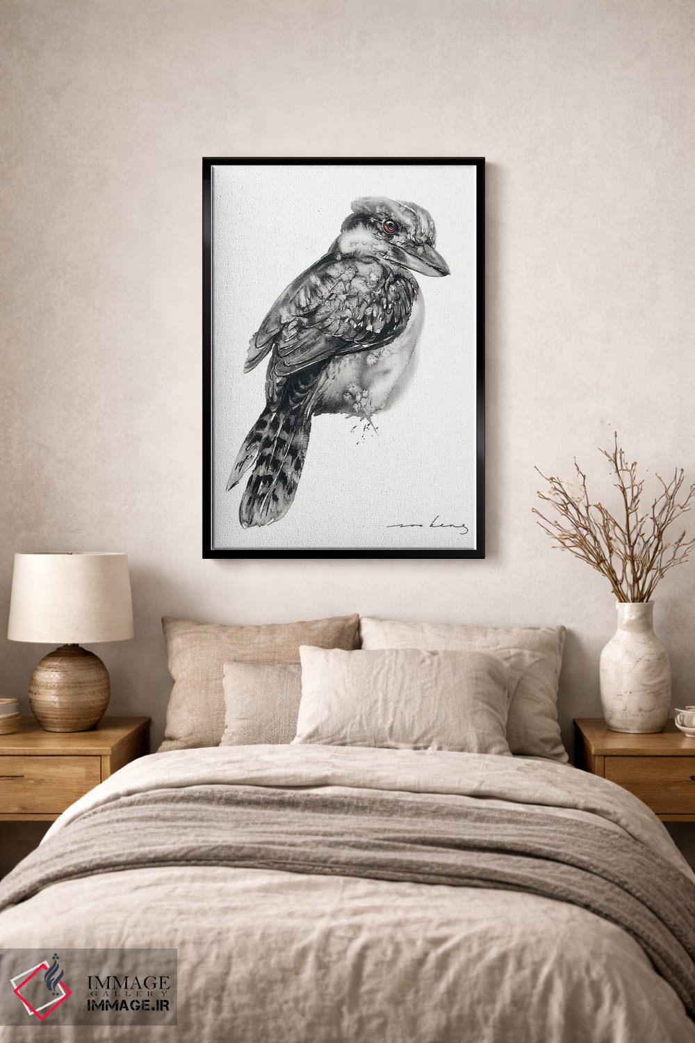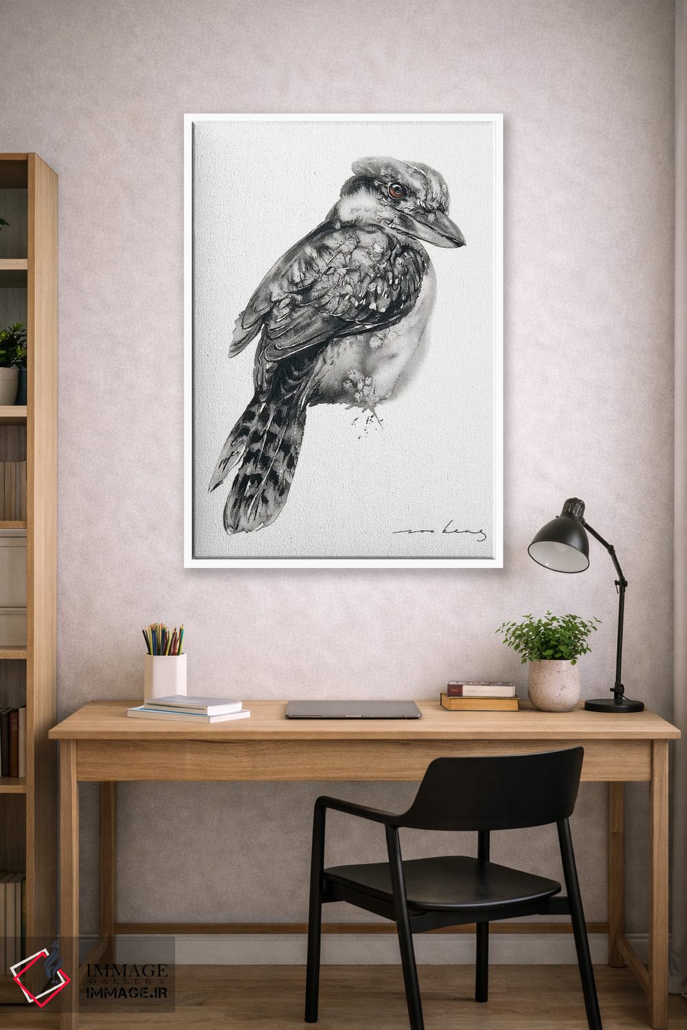 «کاکابورا ۲ (پرنده بومی استرالیا)» اثرِ «سو بنگ لیم» از آن کارهاییست که گرما و شخصیت به فضا اضافه میکند؛ برای راهروها و ورودیهای گرم انتخاب خوبیست. با قاب چوبی یا مشکی، حس مرتبتری پیدا میکند.