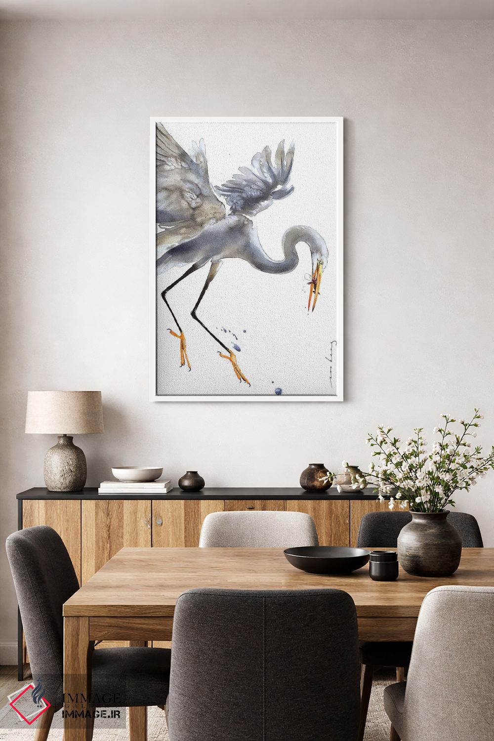 اگر به آثار حیوانات علاقه دارید، «هنرمندی اگرت (مرغ ماهیخوار)» اثرِ «سو بنگ لیم» بافت و جزئیات را طوری نشان میدهد که نگاه میماند، برای اتاق کودک (بدون لحن کودکانه) گزینهٔ مناسبیست. حسش صمیمی است، اما کیفیتش جدی و خوشپرداخت.