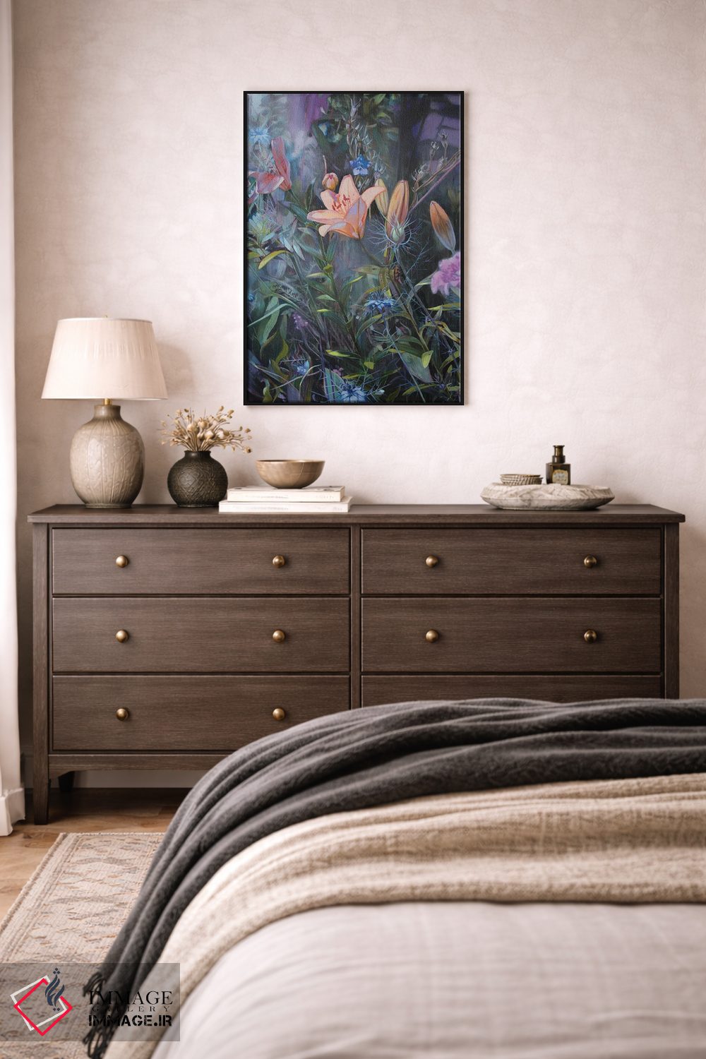 بوم گالری ایماژ نسخهی چیدماناتیوِ گالریپسند از یک اثر هنری است. روی کنواس بدون اسید با بافت ظریف و یکنواخت با اجرای چاپ هنری جیکلی (Giclée) برای آرتپرینتهای جدی با رنگهای آرشیوی UltraChrome HDR برای طبیعیتر دیده شدن رنگها روی دیوار؛ نتیجه، تصویرسازیِ دقیقتر و حس ارائهی گالریوار است. اسمبل تمیز و آمادهی نصب؛ کشیدگی استاندارد روی کلاف و یراق مناسب.