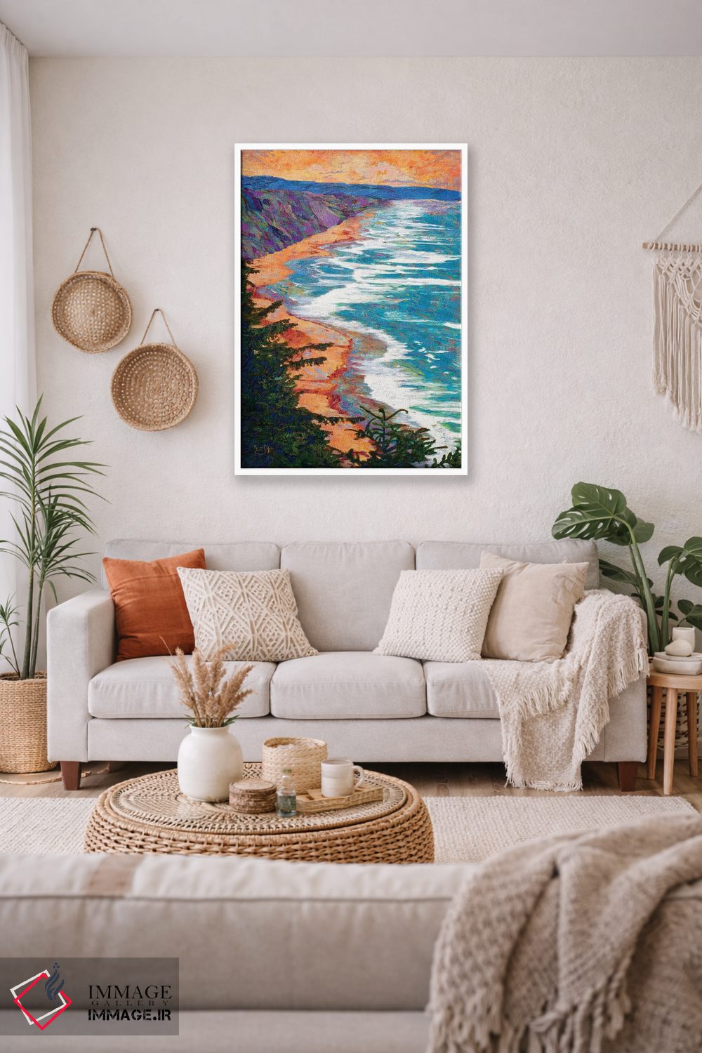 طراحی بوم گالری ایماژ بهگونهای است که اثر روی دیوار «پرداختشده» و حرفهای دیده شود—نه پرزرقوبرقِ بیپایه؛ بلکه دقیق و خوشپرداخت. بافت ظریف کنواس کمک میکند حس اثر هنری را در نگاه نزدیک نگه میدارد و برای محیطهای رسمیتر هم انتخاب مطمئنی است. با کنترل تونها، تعادل بهتری بین نور و رنگ ایجاد میکند و همین «پرداخت» تفاوت را میسازد. حاصل کار، یک تابلو خوشنشین است که هم از دور اثرگذار است و هم از نزدیک خوشخوان؛ برای هدیهی هنری هم انتخاب محترمانهای است. در کنار چوب و متریالهای طبیعی، بافت کنواس دلنشینتر دیده میشود.