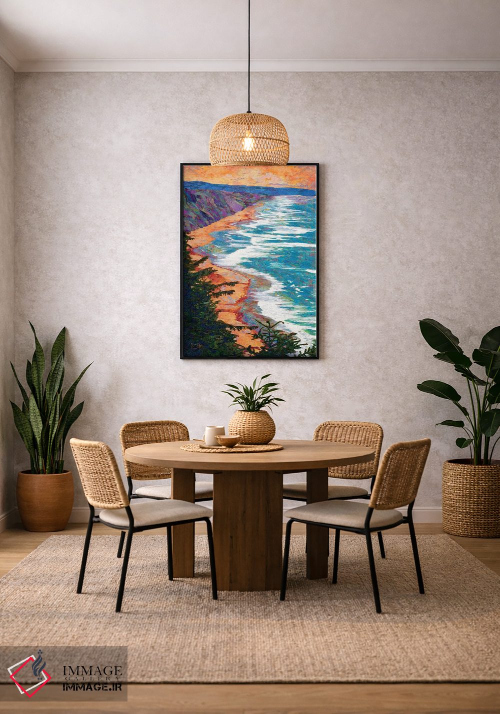 برای گالریوال و چیدمان چندقابی، تیم ایماژ کنار شماست تا انتخاب نهایی دقیقتر انجام شود. وقتی قصد دارید اثر در فضا «مینیمال و آرام» دیده شود، نور موضعی ملایم نتیجه را بهتر نشان میدهد و نتیجه را مرتبتر و تمیزتر میکند.