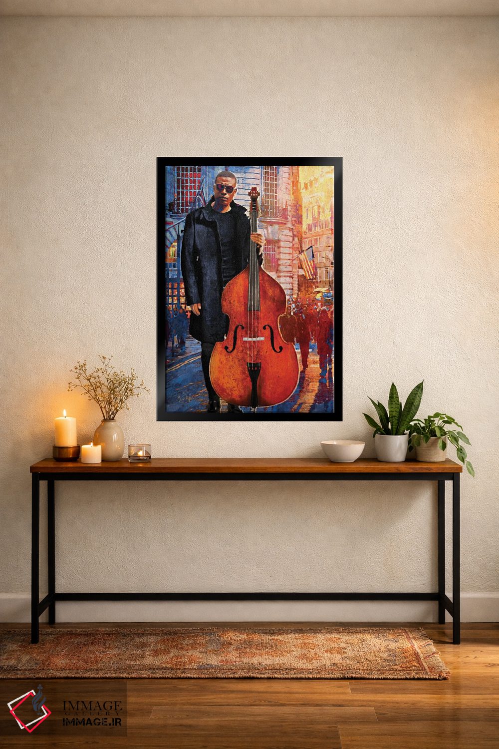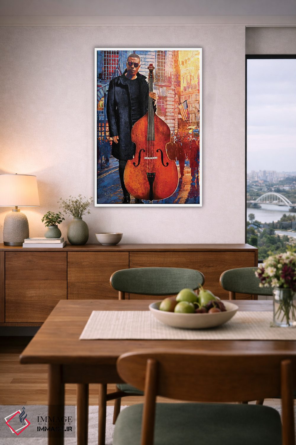 براساس پالت ترکیبی اثر، قاب تیک گرم (چوبی) پیشنهاد اول است و مشکی مات (فریم متوسط) مکمل. برای سفارشهای پروژهای با ابعاد و قابهای اختصاصی با ایماژ در تماس باشید.