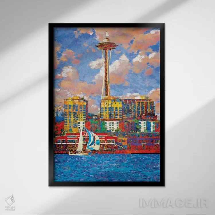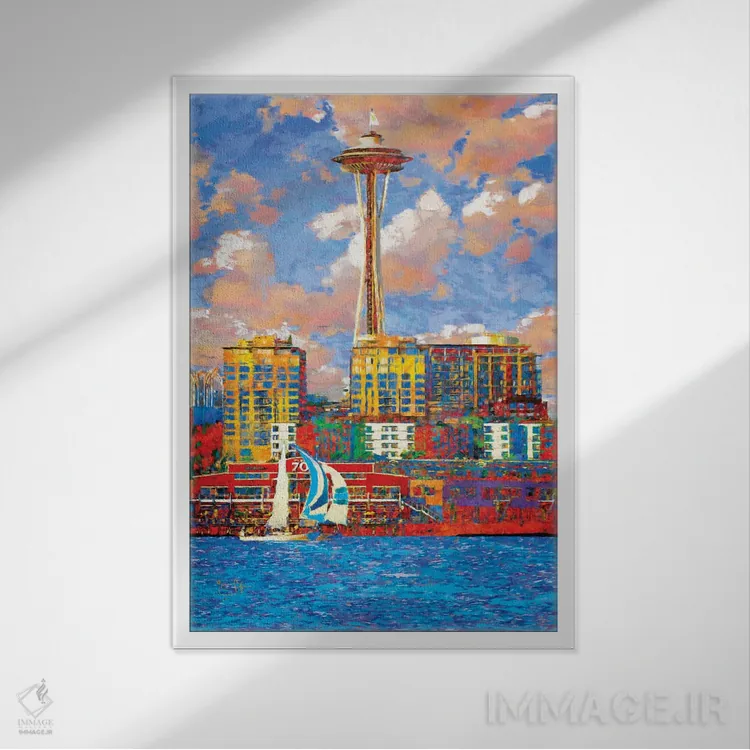 تابلو دکوراتیو سیاتل آفتابی اثر لیزا رابینسون - نمای قاب‌دار سفید