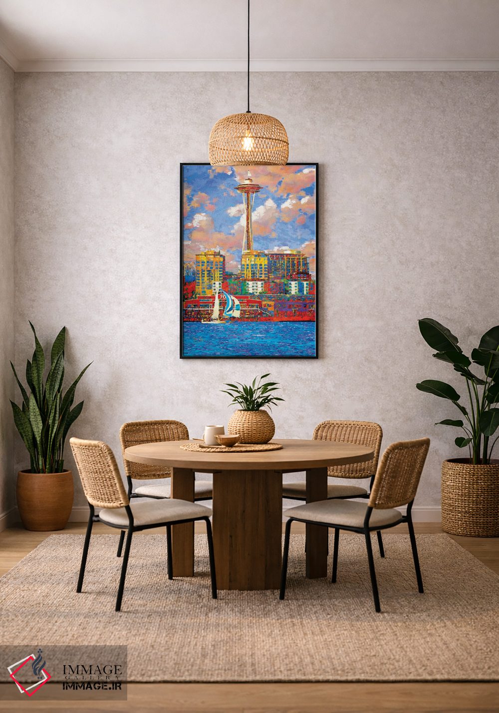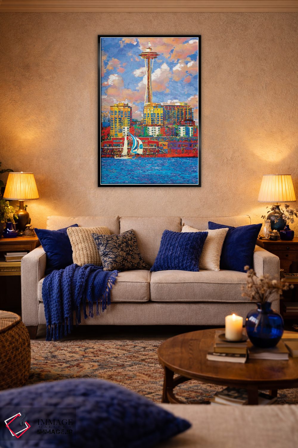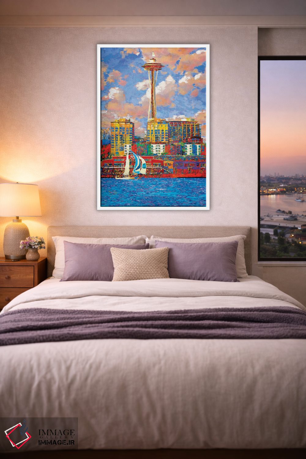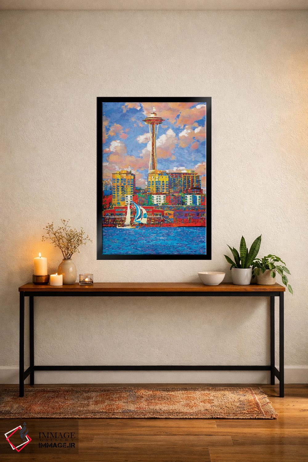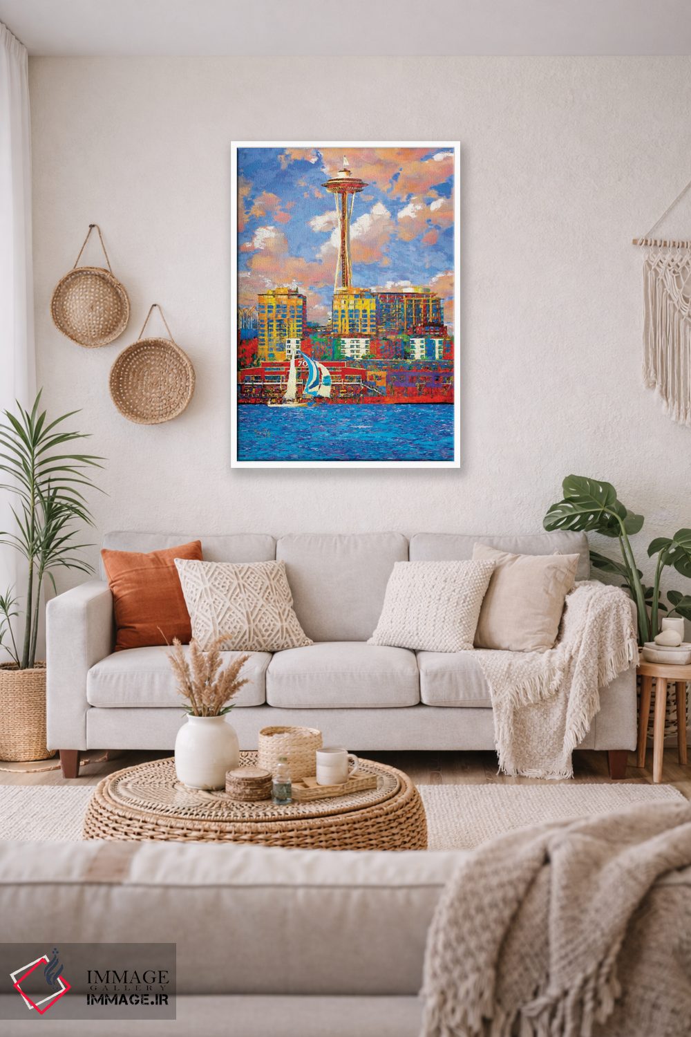 تابلو دکوراتیو سیاتل آفتابی اثر لیزا رابینسون - نمای روبه‌رو روی دیوار