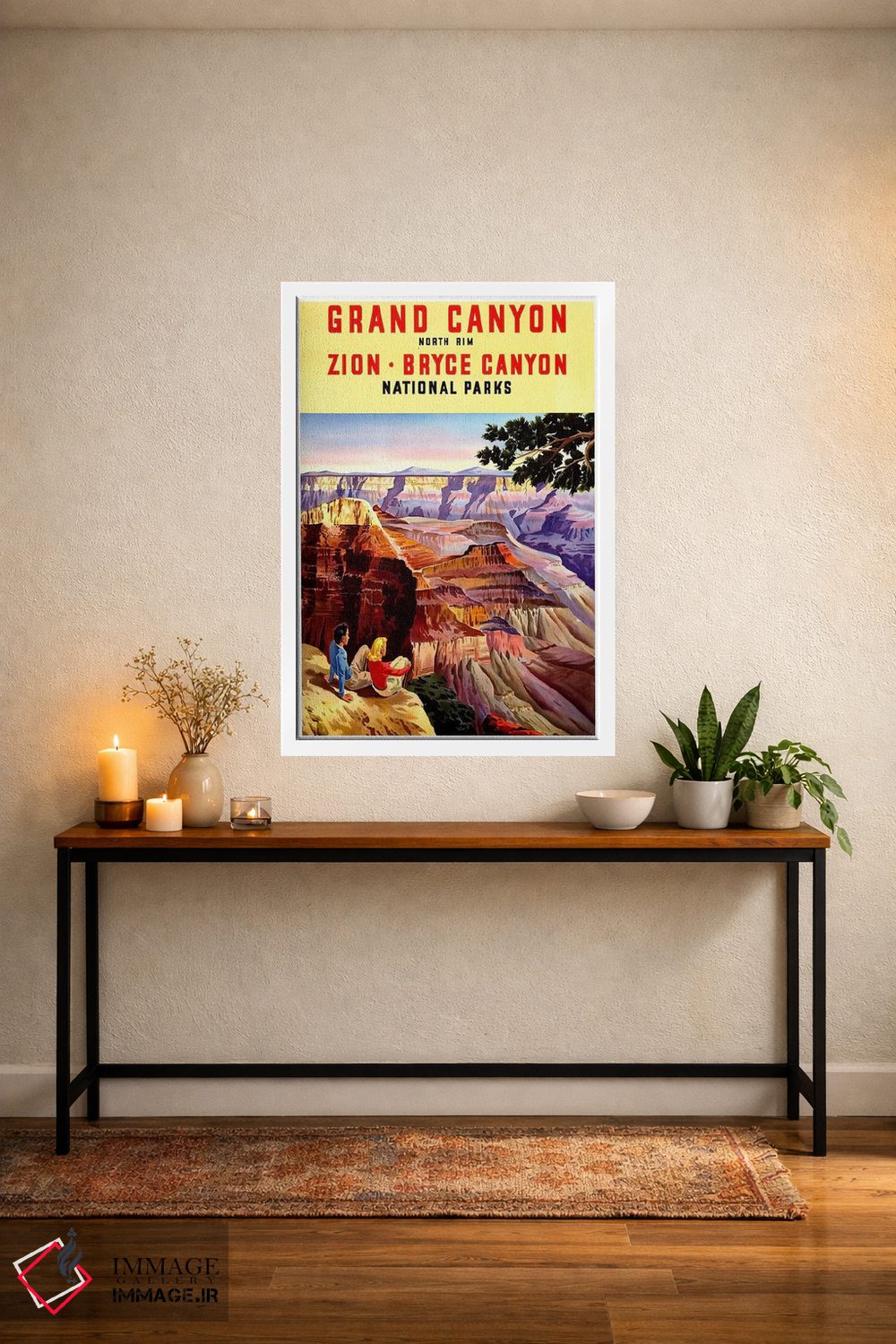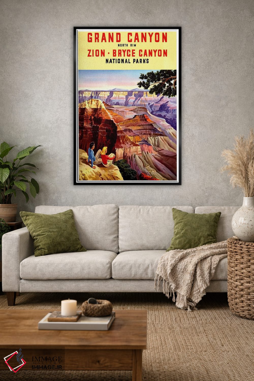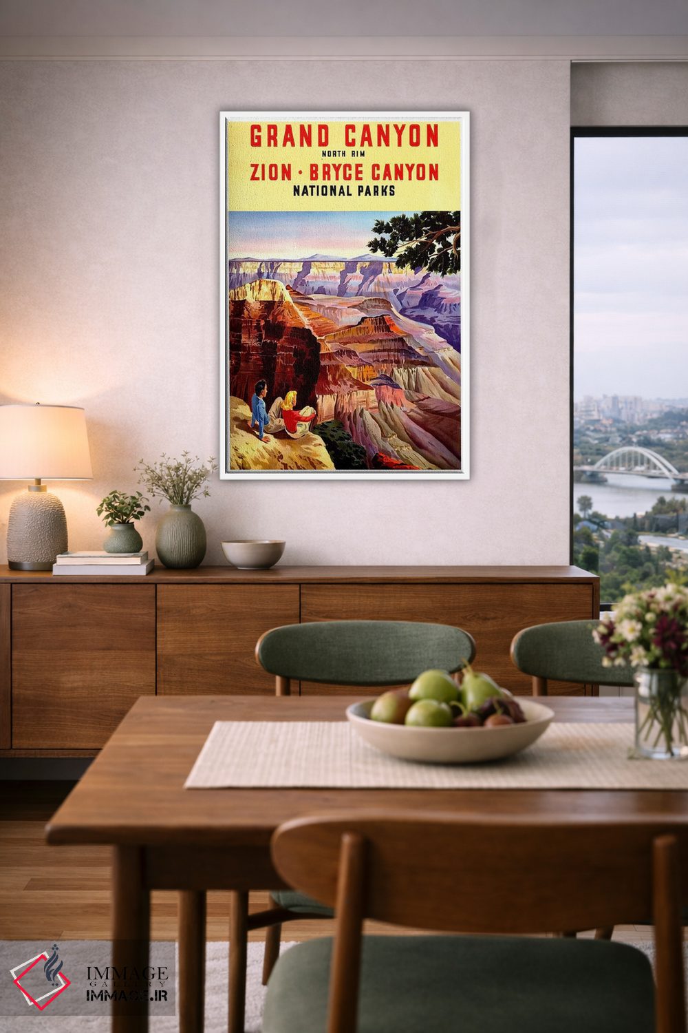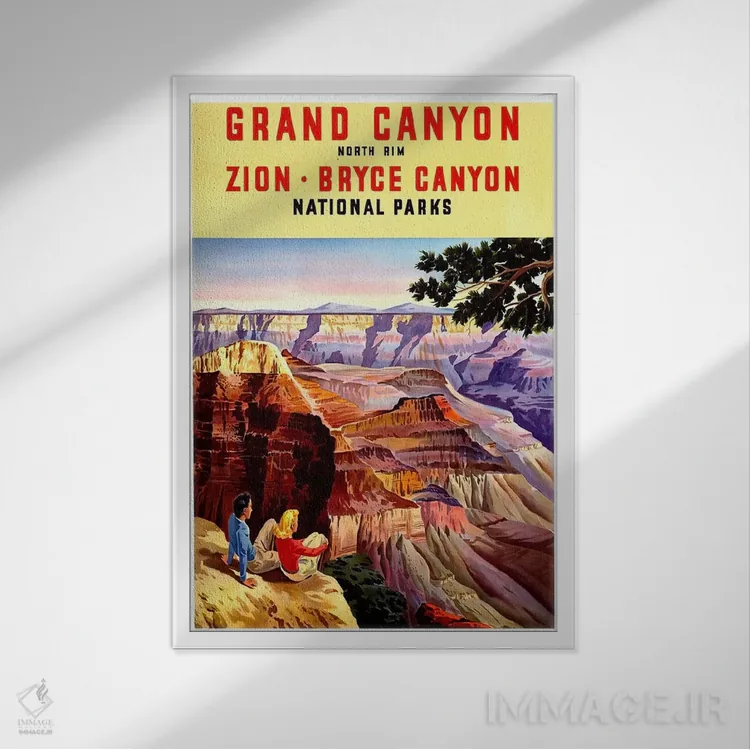 «Zion، And Bryce Canyon National Parks، پارکهای ملی گرند کنیون، زایون و برایس کنیون» اثرِ «هنرمند ناشناس» با تایپوگرافیِ کنترلشده، روی دیوار خوب مینشیند؛ برای کنار کتابخانه، میز کار یا راهروهای باریک عالی است.