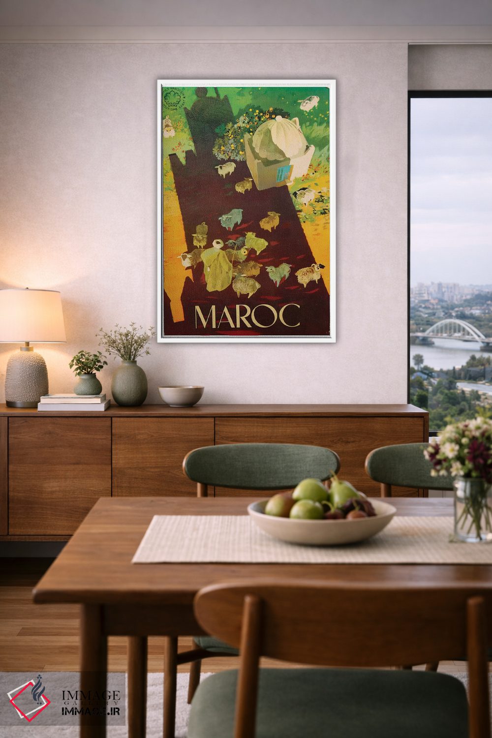 براساس پالت ترکیبی اثر، قاب تیک گرم (چوبی) پیشنهاد اول است و مشکی مات (فریم متوسط) مکمل. برای سفارشهای پروژهای با ابعاد و قابهای اختصاصی با ایماژ در تماس باشید.