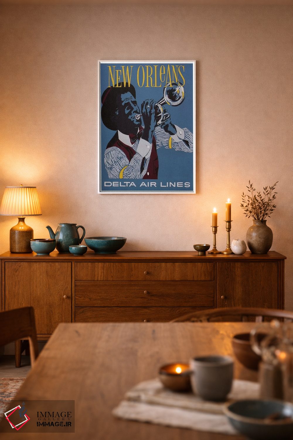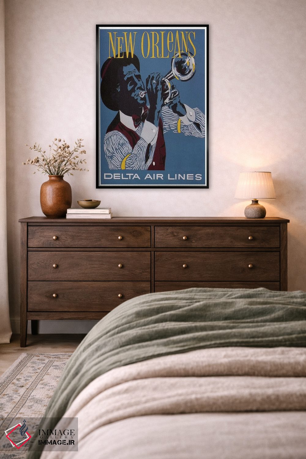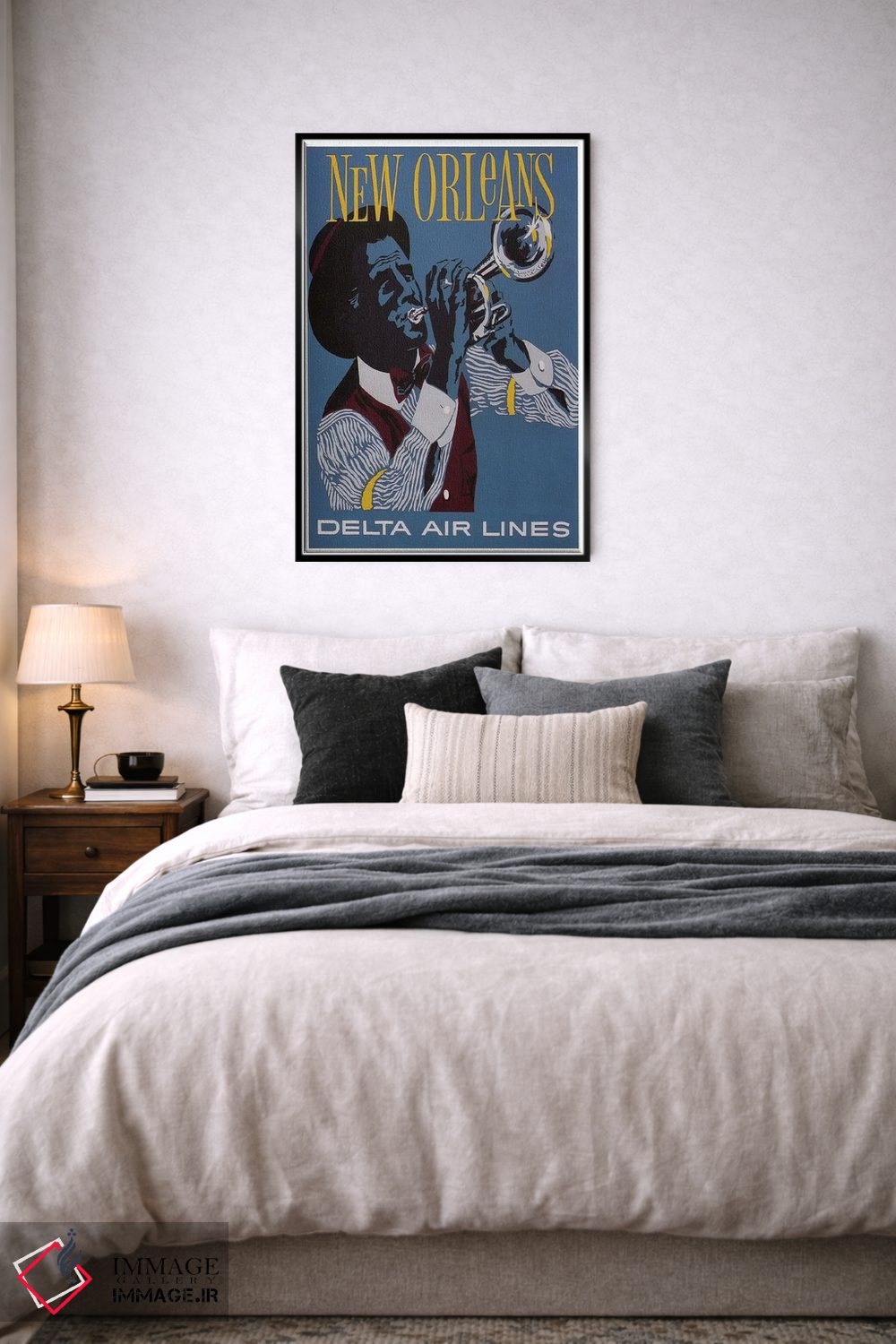 «نیواورلئان» اثرِ «هنرمند ناشناس» بهخاطر ساختار گرافیکیاش، کنار رنگهای خنثی و دکور صنعتی هم خوب جلوه میکند.