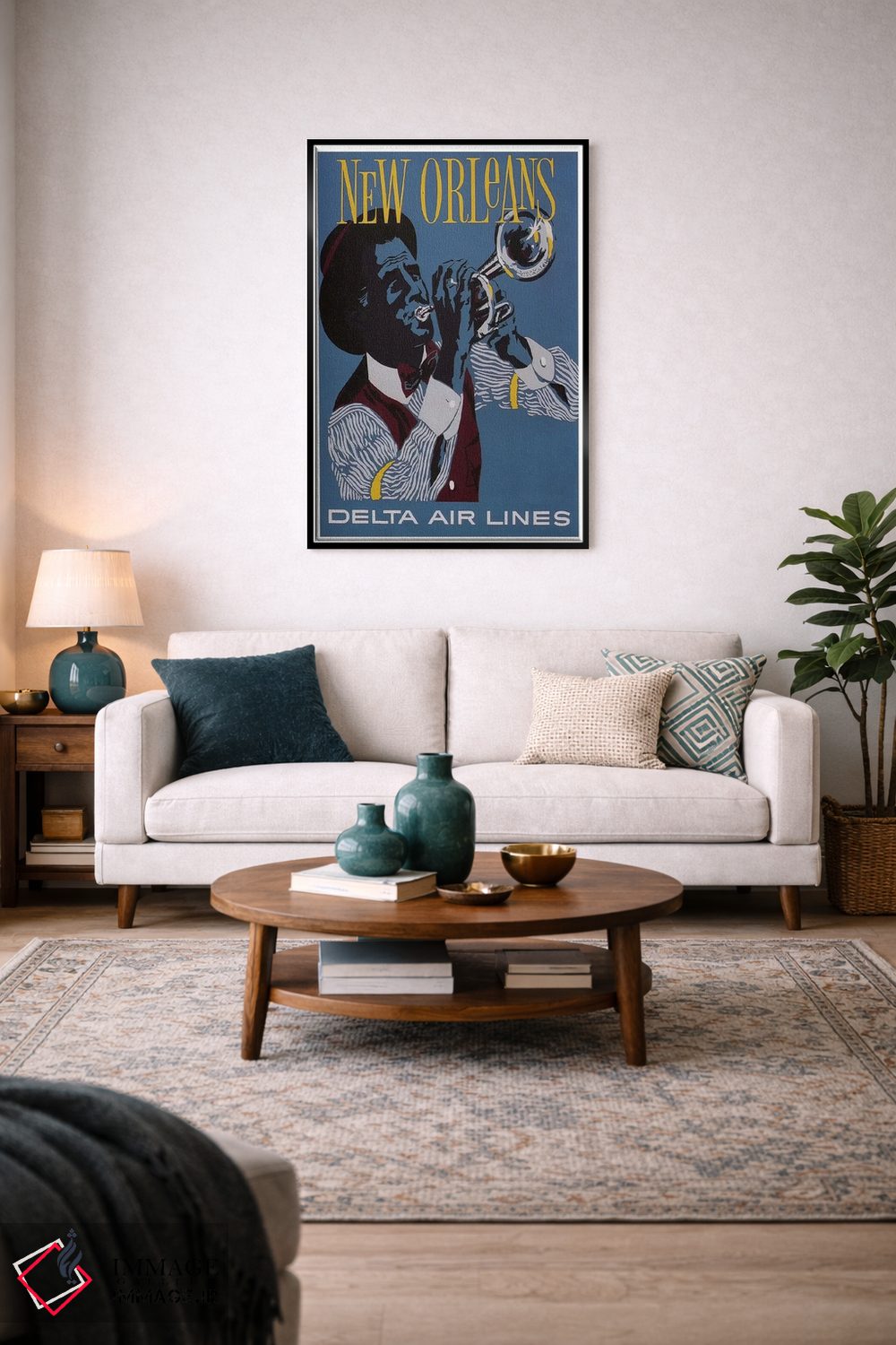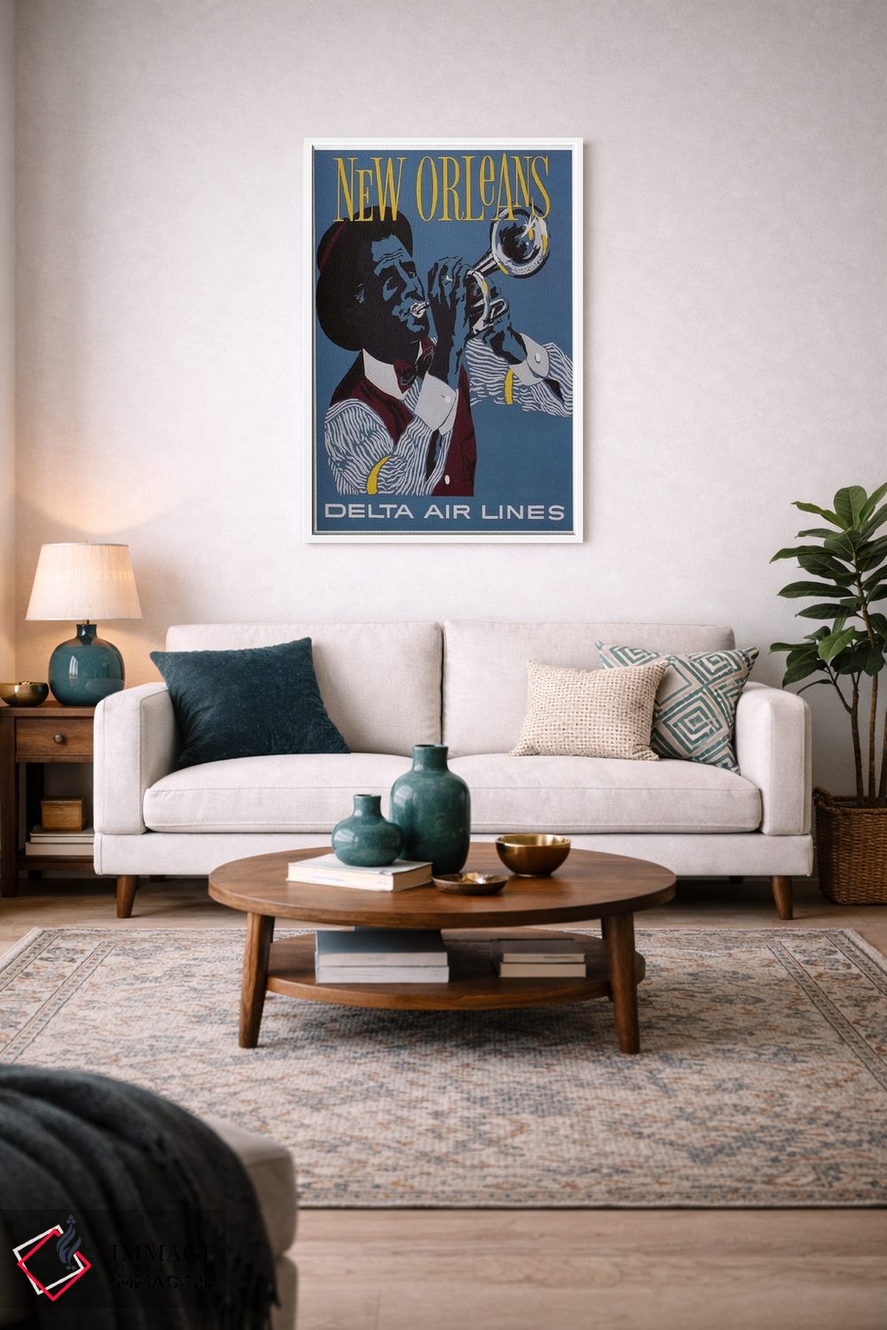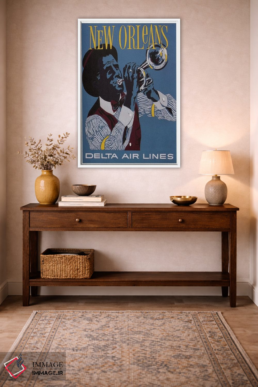 «نیواورلئان» اثرِ «هنرمند ناشناس» بهخاطر ساختار گرافیکیاش، کنار رنگهای خنثی و دکور صنعتی هم خوب جلوه میکند.